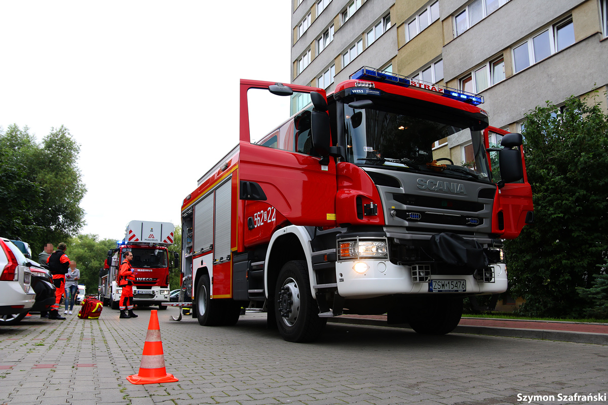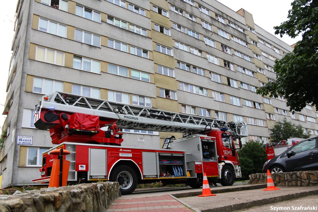 Trzy zastępy straży pożarnej wysłano w piątkowy wieczór do jednego z bloków. Jedna z lokatorek, przez okno zauważyła dym wydobywający się z jednego z mieszkań. Natychmiast zaalarmowano ratowników. Wysłano strażaków, policjantów i ratowników medycznych. Lokatorka nie była w stanie dokładnie określić okna z którego wydobywał się dym. Strażacy za pomocą specjalnego urządzenia sprawdzili w którym mieszkaniu jest podwyższona temperatura.