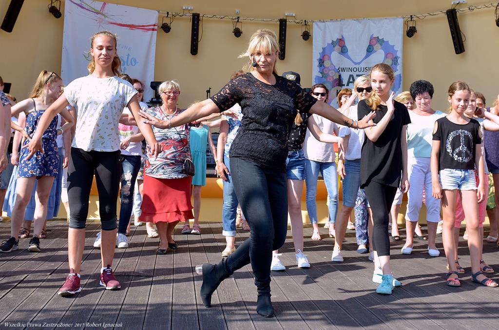Polska tancerka, wielokrotna mistrzyni Polski w tańcu towarzyskim Iwona Pavlović poprowadziła w muszli koncertowej warsztaty taneczne. Chętnych nie brakowało. Tańczyli młodsi i nieco starsi.