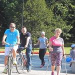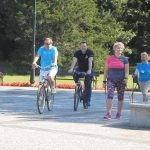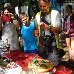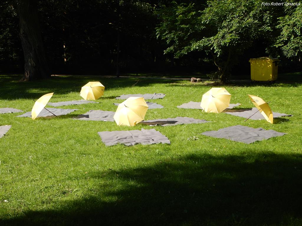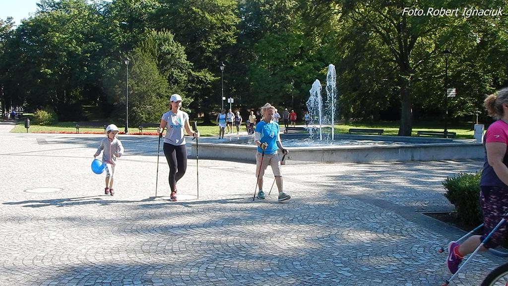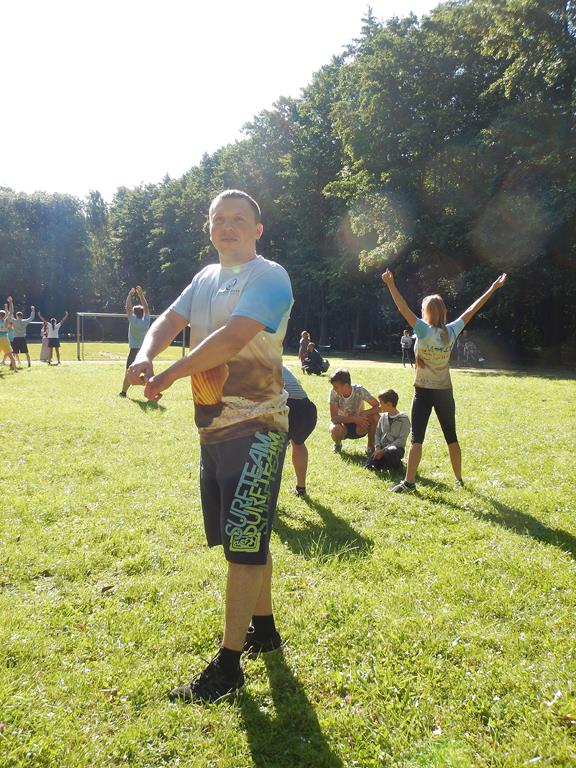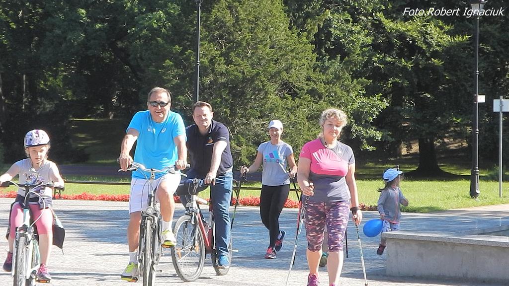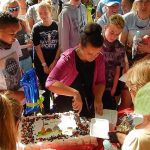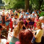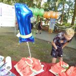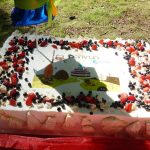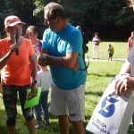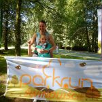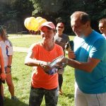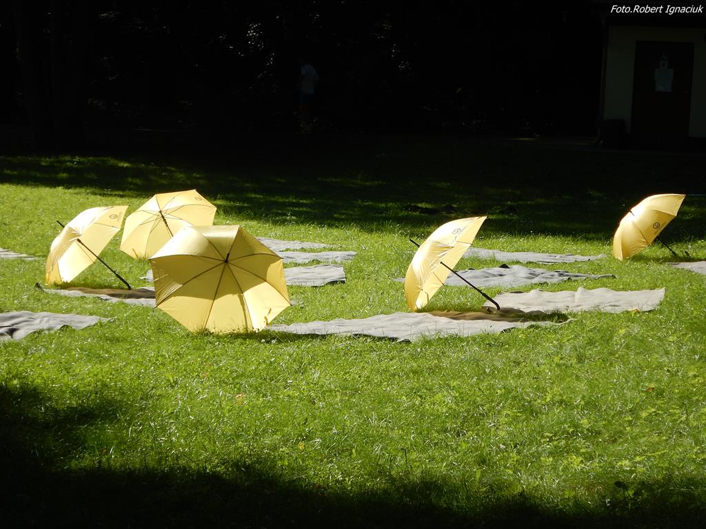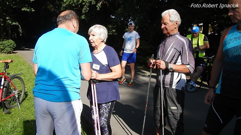 Część rekreacyjna parkrunu miała charakter piknikowy. Na trawie na przyniesionych przez Mariusza Małochę kocykach, wśród kolorowych plażowych piłek i parasoli, tym razem chroniącym przed słońcem, można się było zrelaksować i oddać łakomstwu. Po biegu wszyscy częstowali się naszym wspaniałym urodzinowym tortem (ukłony i podziękowania dla piekarni Jarosława Węglarza), smacznym ciastem (ukłony i podziękowania dla Anety Burnat-Szczęsnej i Jagody Jaruszewskiej) i arbuzem, nadmienię tu, że wszystko zostało skonsumowane do ostatniego okruszka. Do tego serwowano wodę mineralną, pyszną kawę i dla łasuchów cukierki i czekoladę.