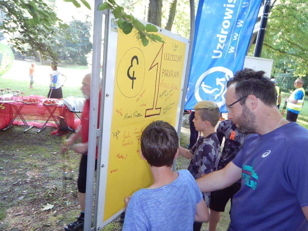 15 lipca 2017 roku przeszedł oficjalnie i z pompą do historii. Rocznica sobotnich biegów była wspaniała. Tylu uczestników jeszcze nie było!  22 wolontariuszy przygotowało imprezę, 145 osób pokonało 5-kilometrowy dystans, a do tego tłum kibiców i jak zawsze urocze psiaki. Na bieg przybyli nawet: Prezydent Miasta Janusz Żmurkiewicz, Zastępca Prezydenta Paweł Sujka, Przewodniczący Rady Miasta Dariusz Śliwiński i Prezes Klubu Biegowego Jogging Świnoujście Andrzej Mrozek, przedstawicielka parkrun Polska – Monika Dykier-Woźniak.  Przed biegiem nagrodzono najwytrwalszych uczestników, którzy przez cały rok starali się być w każdą. Najwięcej parkrunów przebiegli: 48 – MONIKA MURAWSKA, 40 – RYSZARD PILZ, wśród juniorów 39 – KLAUDYNA MAŁOCHA, wśród chodziarzy najlepsza okazała się GABRIELA STAWNA – 41 i KAROL WITKOWSKI – 22. Wszystkim gratulujemy wytrwałości i życzymy aby każda sobota zaczynała się w parku na starcie świnoujskiego parkrunu.