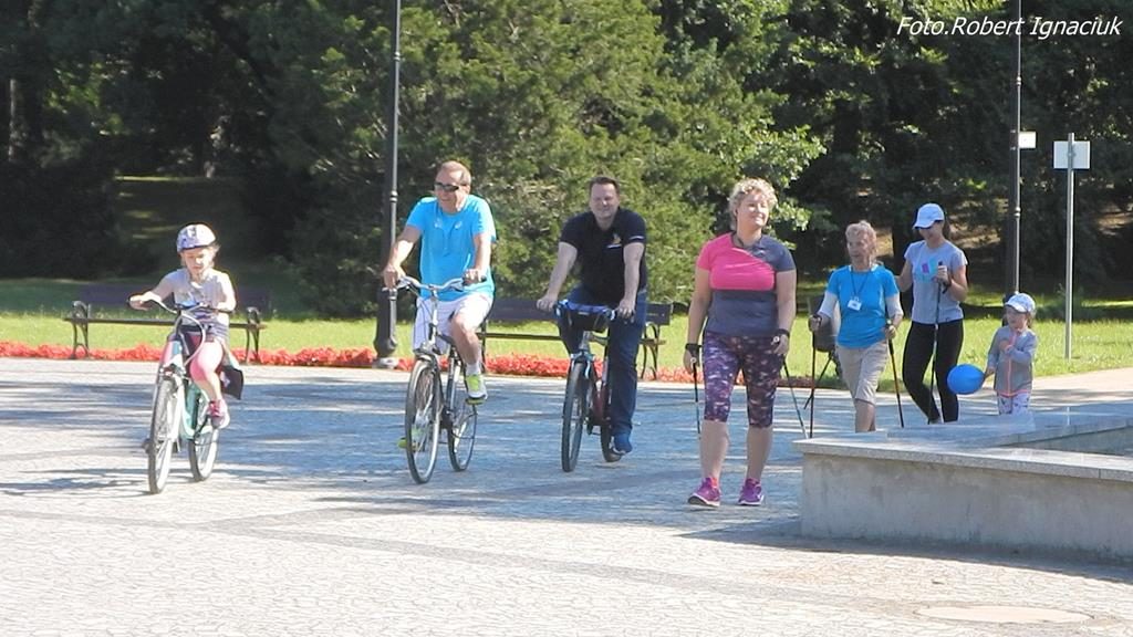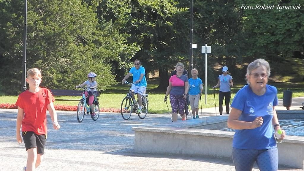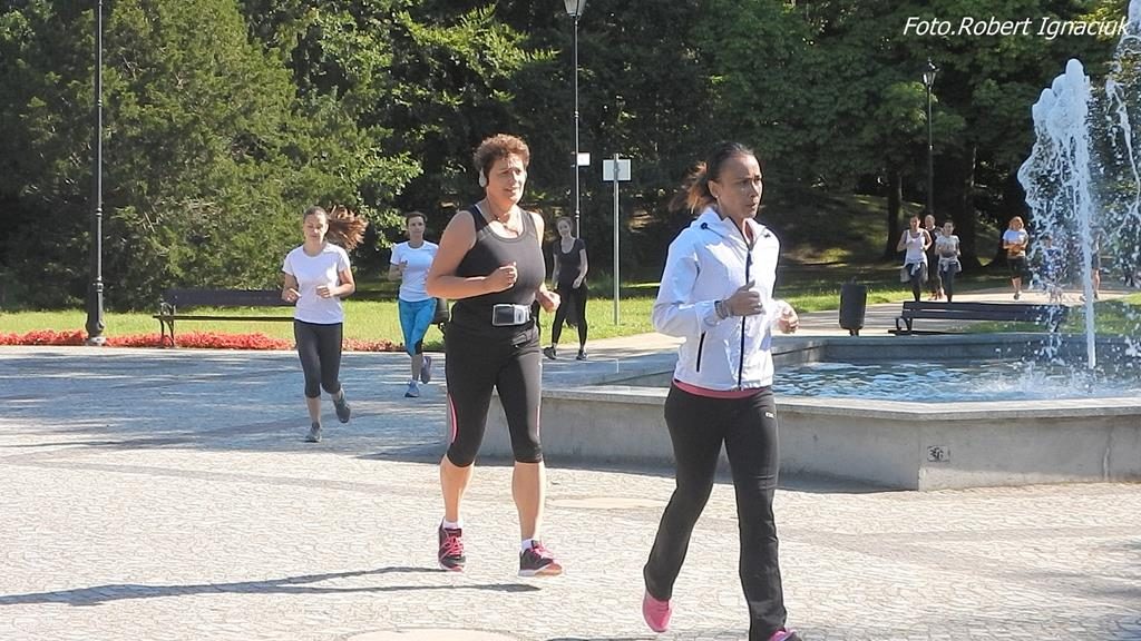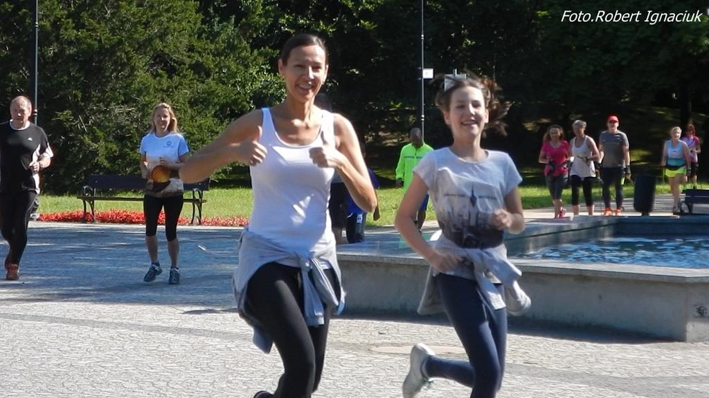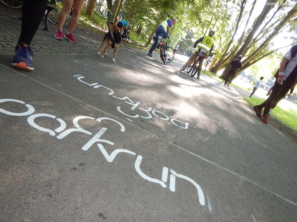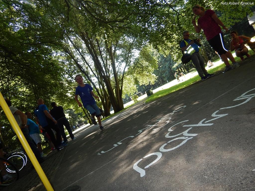 Część rekreacyjna parkrunu miała charakter piknikowy. Na trawie na przyniesionych przez Mariusza Małochę kocykach, wśród kolorowych plażowych piłek i parasoli, tym razem chroniącym przed słońcem, można się było zrelaksować i oddać łakomstwu. Po biegu wszyscy częstowali się naszym wspaniałym urodzinowym tortem (ukłony i podziękowania dla piekarni Jarosława Węglarza), smacznym ciastem (ukłony i podziękowania dla Anety Burnat-Szczęsnej i Jagody Jaruszewskiej) i arbuzem, nadmienię tu, że wszystko zostało skonsumowane do ostatniego okruszka. Do tego serwowano wodę mineralną, pyszną kawę i dla łasuchów cukierki i czekoladę.