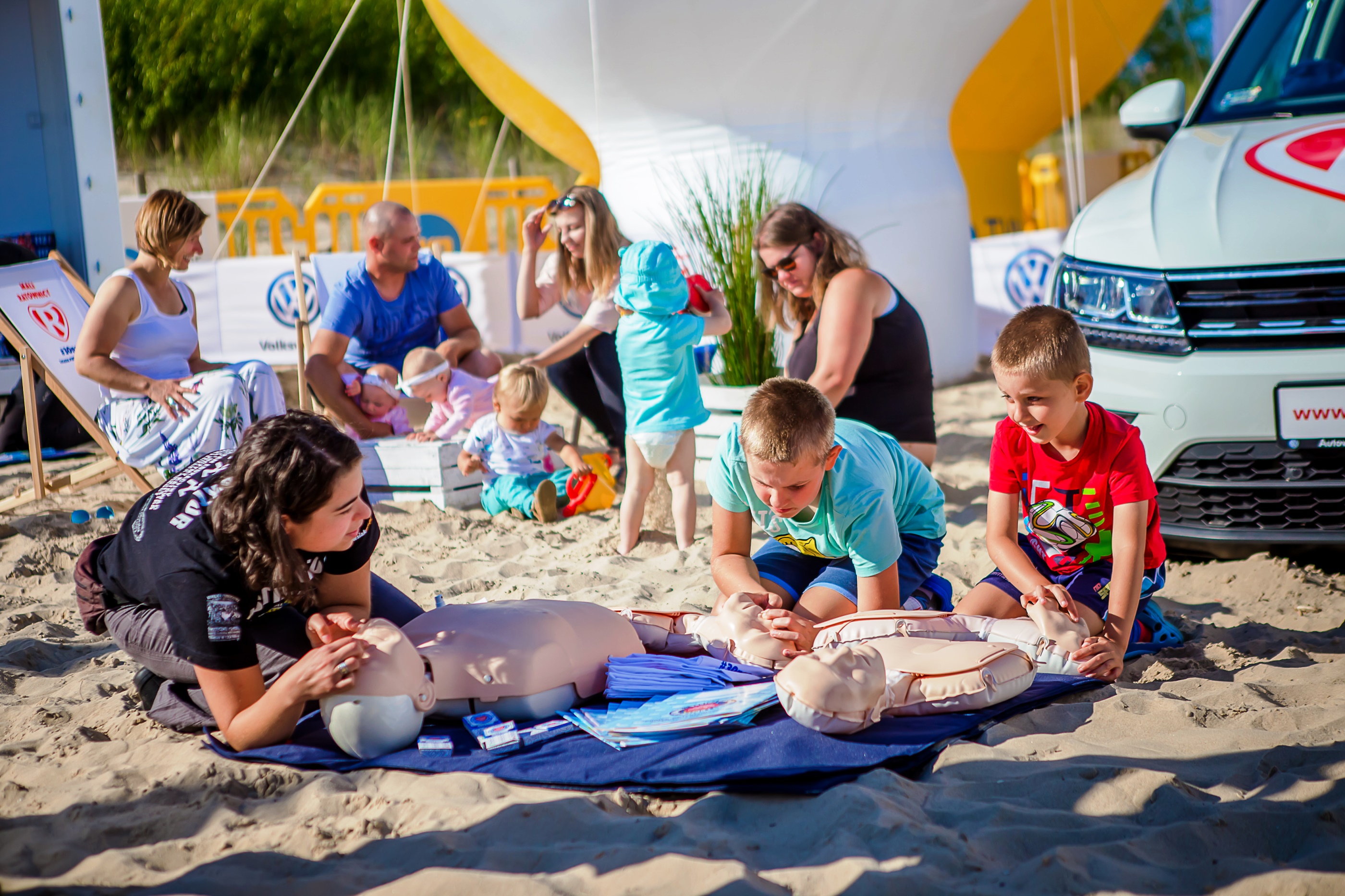 Dzięki programowi „Mali Ratownicy”, stworzonemu przez Volkswagen we współpracy z Fundacją Wielka Orkiestra Świątecznej Pomocy, każde dziecko może zdobyć supermoc i dowiedzieć się jak skutecznie udzielić pierwszej pomocy, kogo zawiadomić w sytuacji alarmowej, na jaki numer zadzwonić czy jak zadbać o swoje bezpieczeństwo w trudnej sytuacji. Teraz najmłodsi mogą nauczyć się tych ważnych rzeczy także podczas wakacji, spędzając czas na plaży. Do 23 lipca, w strefie Volkswagena, instruktorzy Programu Edukacyjnego Ratujemy i Uczymy Ratować pokażą wszystkim chętnym jak zadbać o bezpieczeństwo swoje oraz innych.