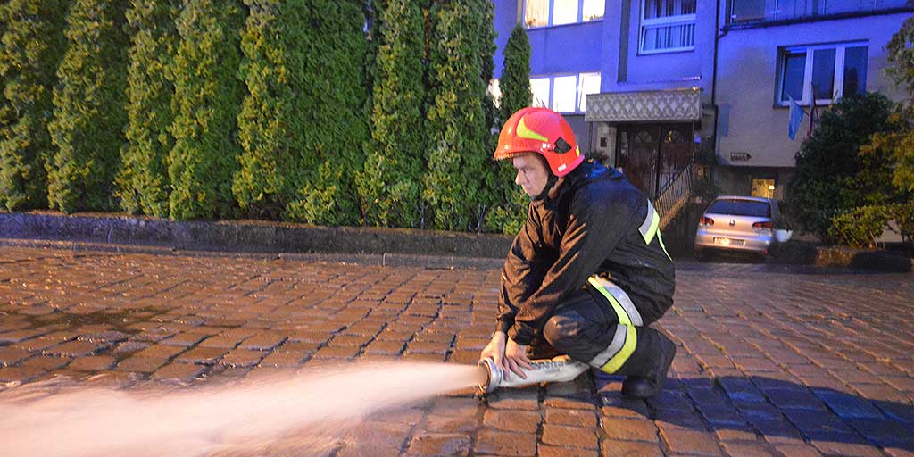 Dwa zastępy straży pożarnej wysłano w czwartkowy wieczór do kościoła pw. Chrystusa Króla. Na miejscu okazało się, że dach zakrystii przecieka. Strażacy weszli po drabinie i sprawdzili przyczynę. Okazało się, że na dachu było prawdziwe jezioro. Powodem okazała się zapchana rynna. Woda zalała część wyposażenia zakrystii. Strażacy za pomocą motopompy usunęli także wodę z kościelnego przedsionka.
