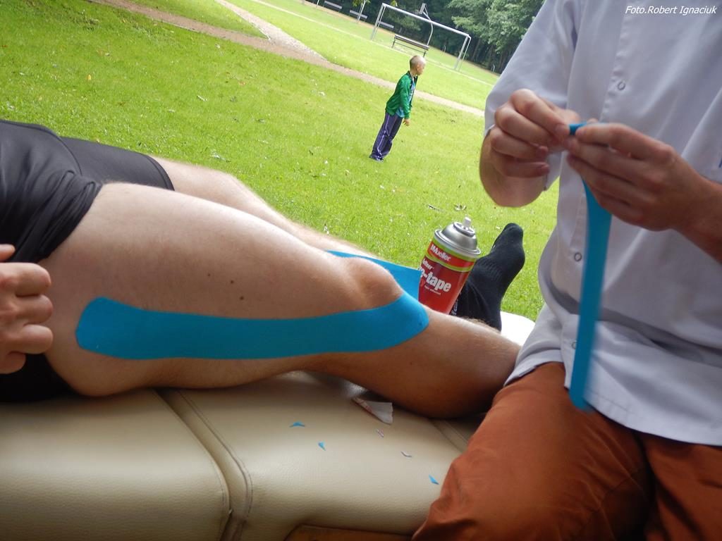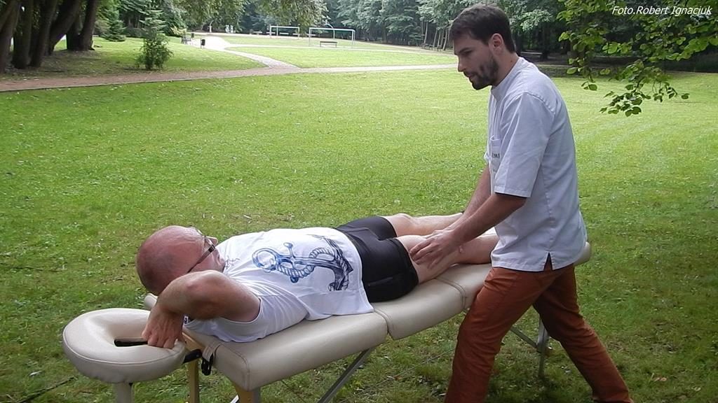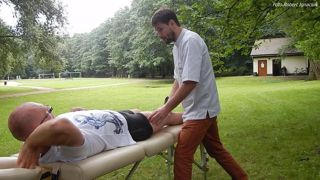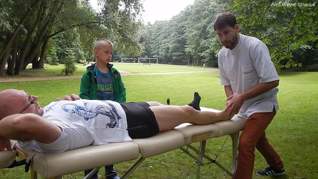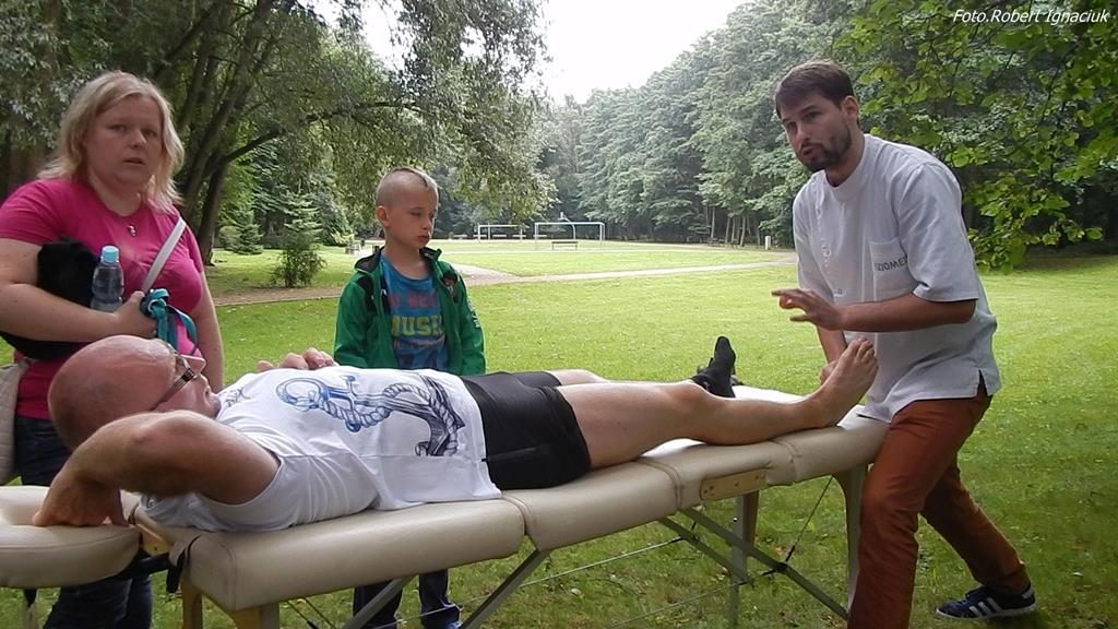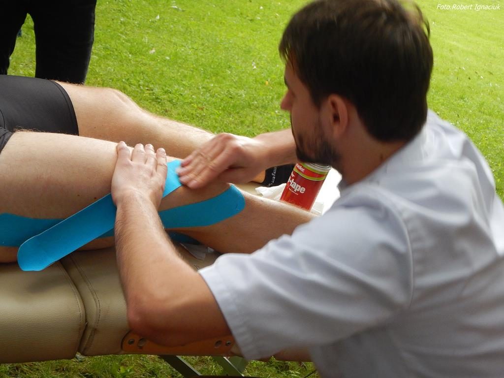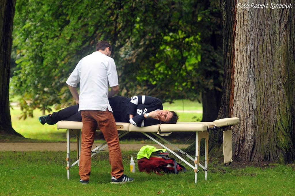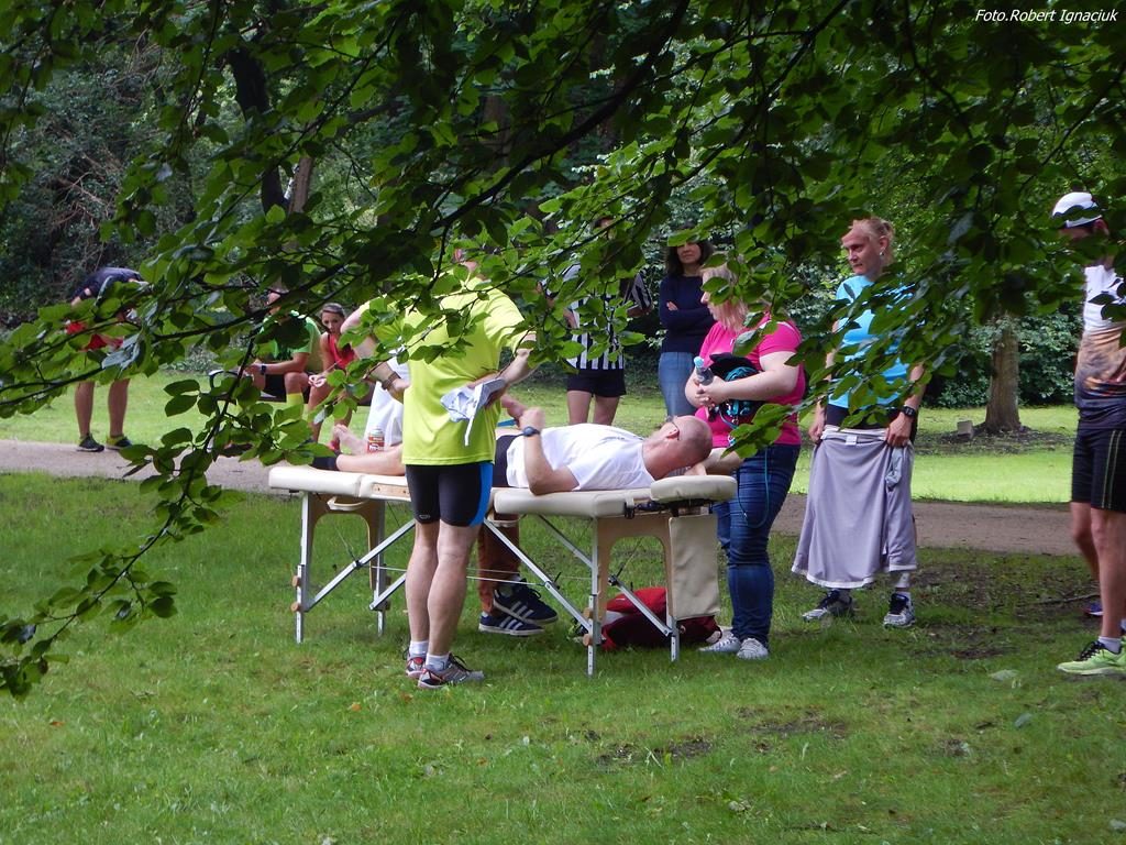 Po dotarciu na metę uczestnicy mogli skorzystać z porady i masażu wykonanego przez zespół fizjoterapeutów z gabinetu Fizjo-Med Karol Śliwiński. Specjaliści fizjoterapii przekazywali również cenną wiedzę na temat rozgrzewki, rozciągania oraz dolegliwości, z którymi my biegacze czasami się zmagamy.