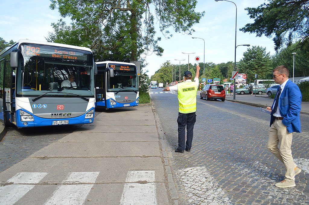 Straż miejska zatrzymuje autobusy na drodze wjazdowej do miasta. W ich opinii powodem jest łamanie prawa przez przewoźnika w dniu wczorajszym. Przedstawiciel UBB twierdzi, że działania są nielegalne, a niemiecka firma wykonuje przewozy transgraniczne zgodnie z prawem. Jak zaznacza, nie wykonuje transportu pasażerów pomiędzy przystankami w Polsce.