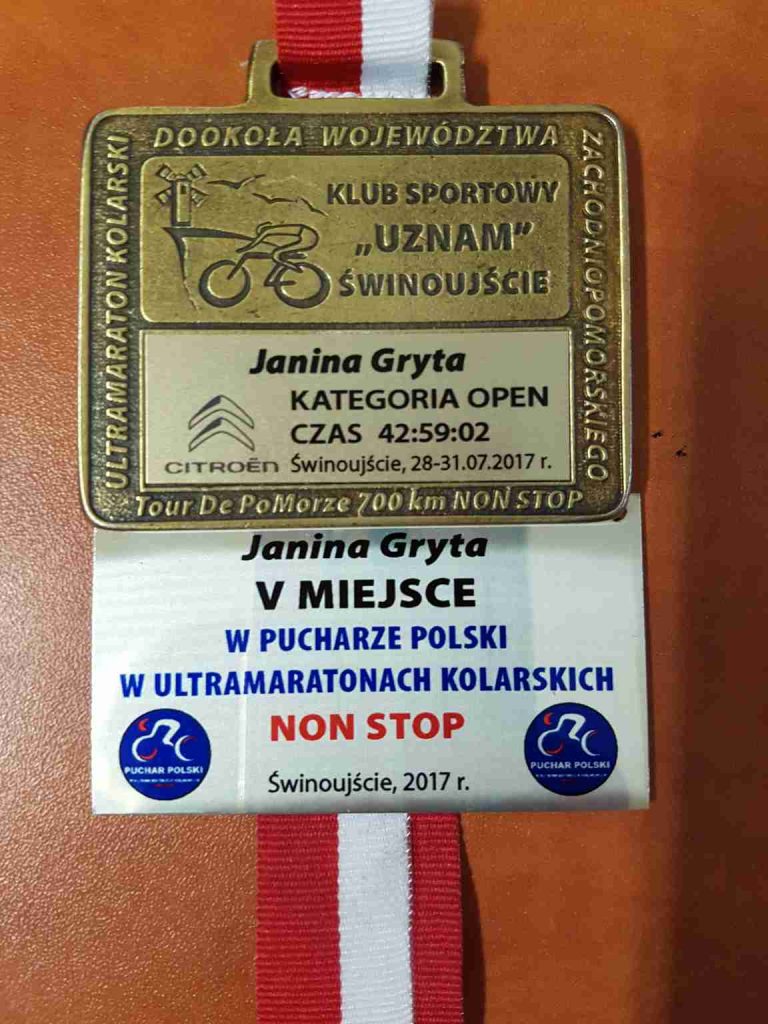 Spośród wielu zawodników z całej Polski, Jana wyróżniła się strojem ufundowanym przez „Uzdrowisko Świnoujście” S.A. oraz ogromną determinacją i wolą walki. Było ciężko, miałam na trasie chwile zwątpienia, ale dojechałam do mety- komentuje Jana Gryta zawodniczka „Uzdrowisko Świnoujście” S.A. Nie obyło się bez przygód, mniej więcej w połowie trasy wyczerpywała mi się bateria w latarce od roweru, a zapasowa mogła wystarczyć jedynie na 2 godz., przede mną noc i ciemny las, myślałam o rezygnacji z wyścigu, ale na szczęście dołączyłam do jednej z grup i razem przejechaliśmy spory odcinek trasy. Mój czas to 42 godziny i 59 minut. Nie zależało mi na śrubowaniu rekordów, ale przede wszystkim na pokonaniu trasy i to się udało. Jestem zadowolona i już szykuję się do startu w Ultramaratonie Bieszczadzkim – podsumowuje Jana Gryta.