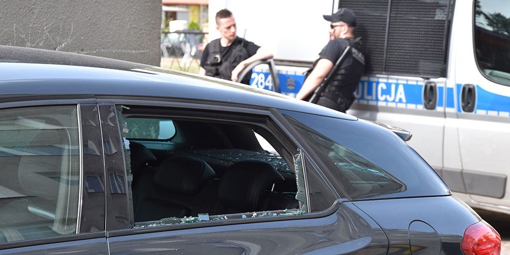 W samochodzie wybite zostały trzy szyby. Sprawca wrzucił także do mieszkania w którym mieszka właściciel – kamień. Mężczyzna został ranny w głowę. Foto: Wojciech Basałygo
