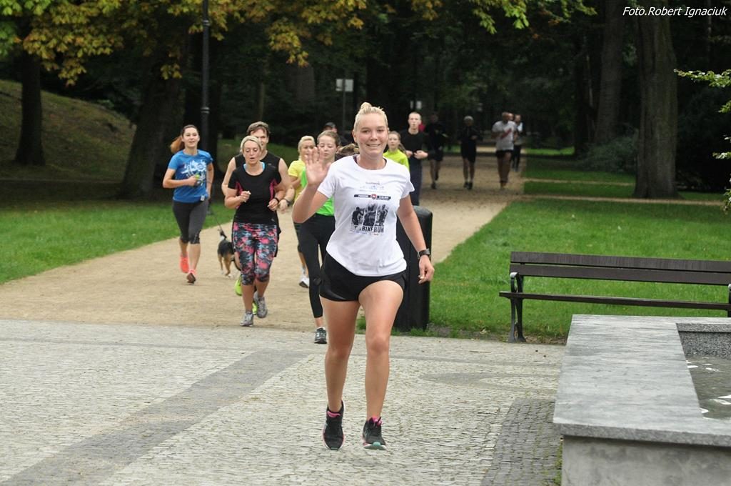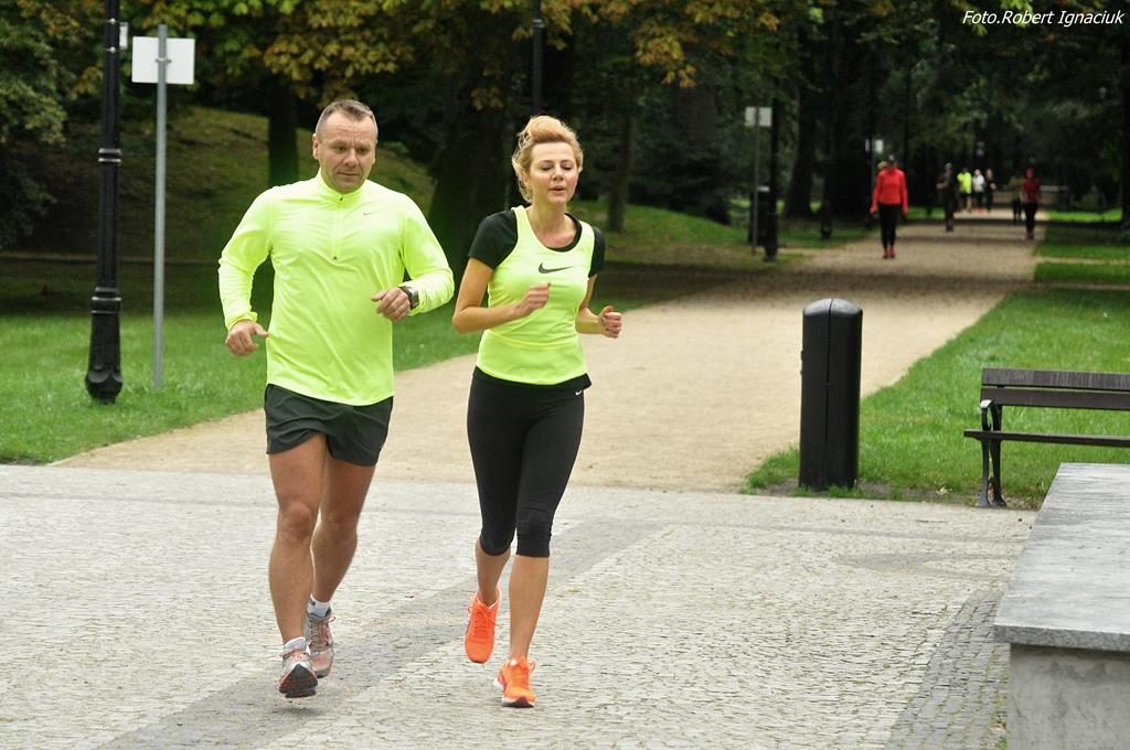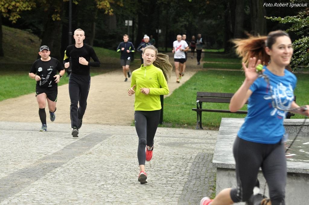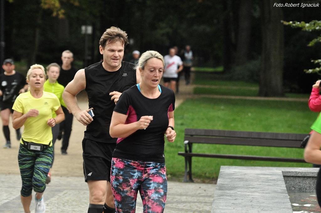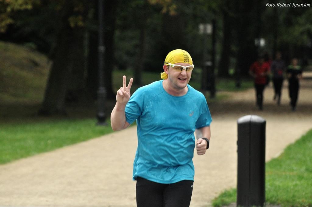 „Rumieńce lata pobladły, liść złoty z wiatrem mknie…” a to niewątpliwie oznacza tylko jedno – mimozami jesień się zaczyna, a jak jesień to i chłodniejsze poranki i krótsze dni i więcej melancholii… Ale nam to w niczym nie przeszkadza. Zawsze jesteśmy zwarci i gotowi do zorganizowania kolejnego parkrunu. Dzisiejszy 63. Bieg przygotowało z ogromnym entuzjazmem i radością aż 16 wolontariuszy, bo fajnie jest nie tylko biegać ale też pomagać innym.