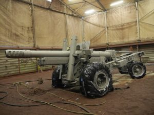 1. Armatohaubica w trakcie remontu. Obecnie trwają prace wykończeniowe. Zabytek został także ukompletowany w optykę, wyciory i inne narzędzia pomocnicze.
