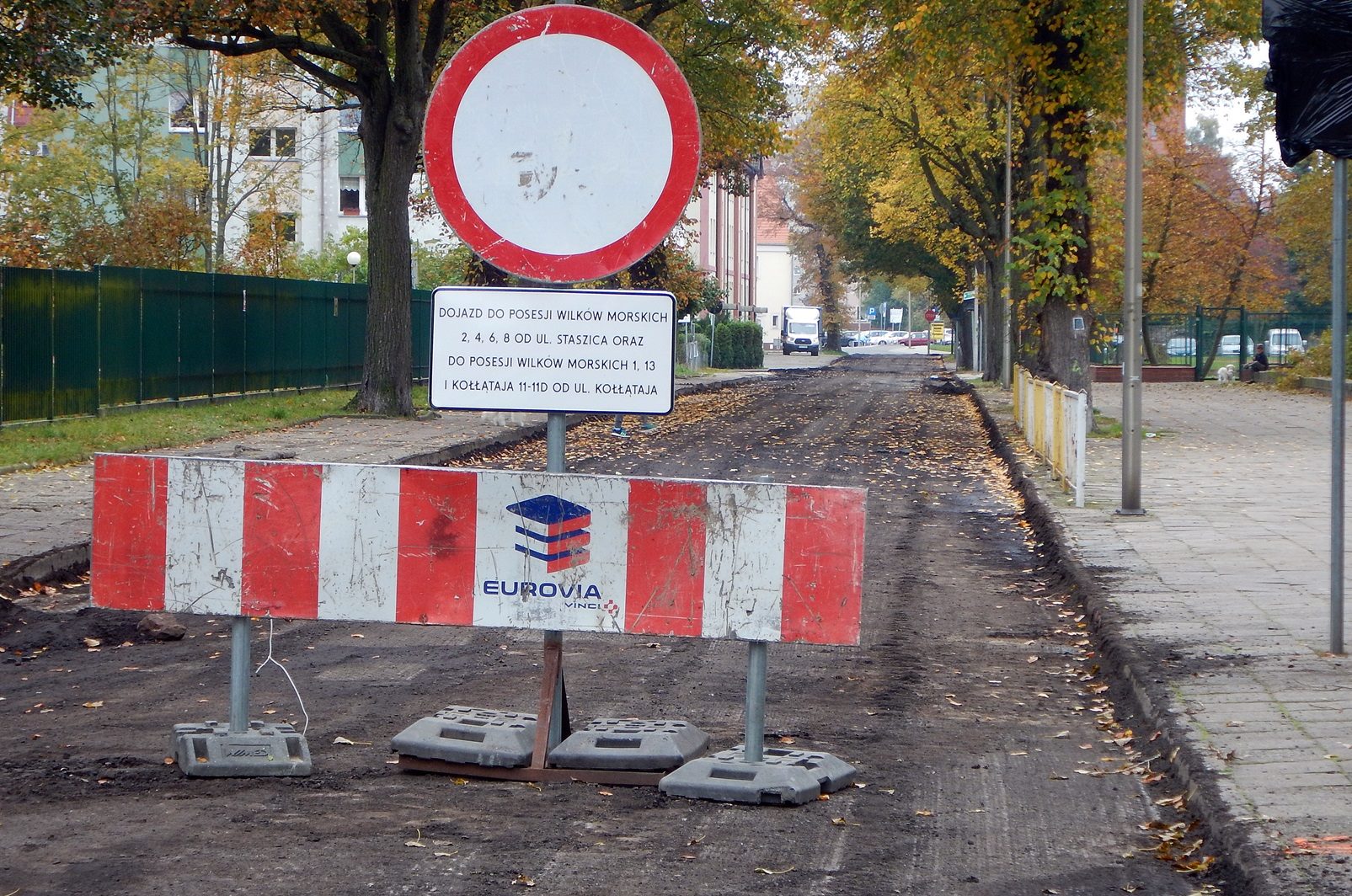 Do 31 grudnia 2017 r. potrwa remont ulicy Kościuszki. W pierwszym etapie wyłączona z ruchu zostanie ulica Kościuszki na odcinku od ulicy Kołłątaja do ulicy Batalionów Chłopskich. Dojazd do posesji przy ulicy Wilków Morskich nr 2, 4, 6, 8 będzie się odbywał od ulicy Staszica, a do posesji Wilków Morskich nr 1, 13L oraz Kołłątaja 11, 11D od ulicy Kołłątaja.
