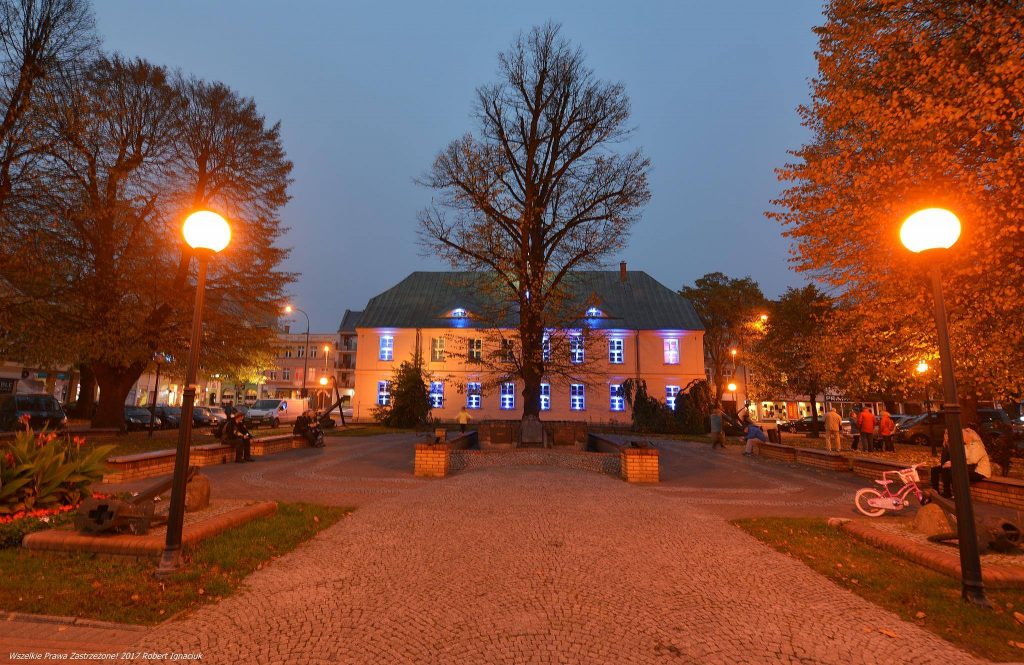 We wtorek można było zobaczyć próbę oświetlenia. W oknach i na wieży muzeum zamontowano lampy led.