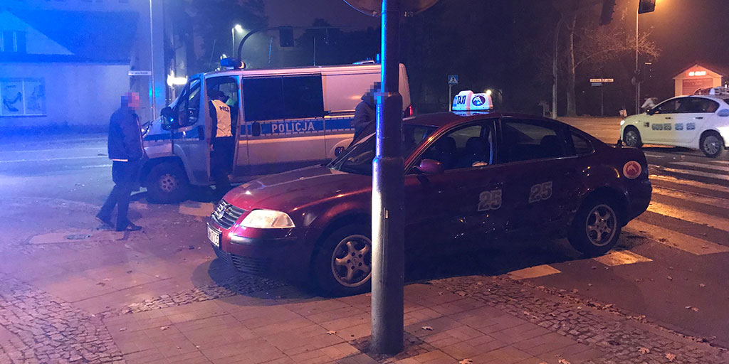 Do groźnie wyglądającego zdarzenia drogowego doszło na skrzyżowaniu ulicy Matejki z Konstytucji 3 Maja.  W piątek rano, kierujący citroenem wjechał w jadącą po ul. Konstytycji 3 Maja taksówkę.