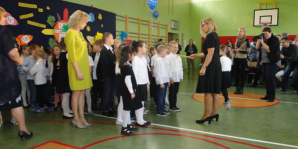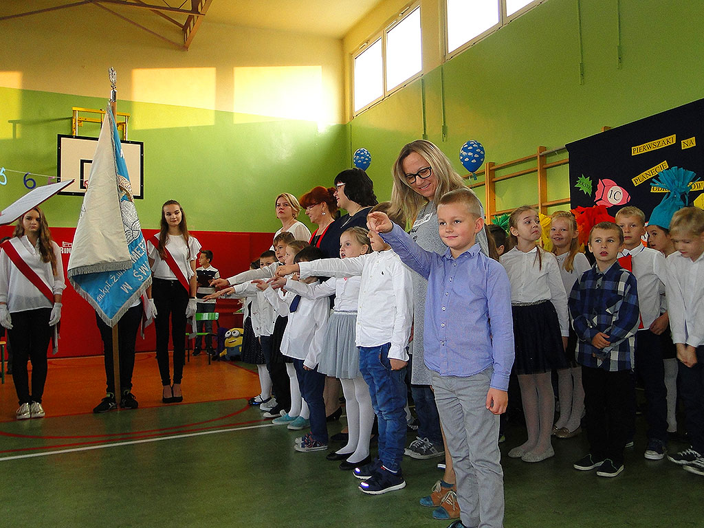 Zdecydowanie najważniejszym wydarzeniem na tym etapie nauki jest ich Pasowanie na Ucznia. Do tej uroczystości, najmłodsi przygotowywali się już od pierwszych dni nauki w szkole. Zapoznali się ze swoimi obowiązkami i prawami, poznali zasady zachowania się w szkole, wiedzieli bowiem, że aby zostać przyjętymi do grona braci uczniowskiej, będą musieli udowodnić, że są tego godni. W środę, 18 października Pierwszoklasiści i ich rodzice, a także Dyrekcja szkoły i nauczyciele zgromadzili się na sali gimnastycznej, aby wziąć udział w tym, tak ważnym dla uczniów wydarzeniu. Po przywitaniu i przemówieniu pani Dyrektor Agnieszki Adamczyk, uczniowie z klasy 1c pod kierunkiem pani Ewy Gańskiej  i 1d pod opieką pani Magdaleny Bortnowskiej zaprezentowali zgromadzonym gościom swoje umiejętności wokalno- recytatorskie. Najważniejszym przeżyciem dla dzieci i ich rodziców był sam moment Pasowania na Ucznia, gdy pani Dyrektor Agnieszka Adamczyk i pani Wicedyrektor Elżbieta Kubicka dotykając ramienia ucznia symbolicznym ołowiem przyjmowała adeptów w poczet uczniów słowami „ Pasuję Cię na ucznia Szkoły Podstawowej nr 4”. Uroczystość zakończyła się wręczeniem dyplomów, pamiątkowych znaczków z logo szkoły oraz słodkich Rożków Obfitości dla wszystkich dzieci. Na koniec czekał również na nich  słodki poczęstunek przygotowany przez rodziców w klasach.