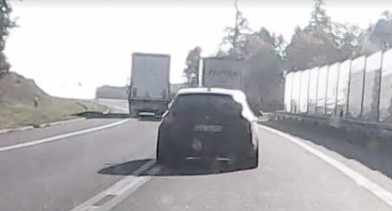 A bo to tylko jeden tirowiec idiota ale bardzo dobrze że ktoś to nagrał ja kretynowi zabrał bym prawojazdy na stałe nienormalni nie powinni prowadzić samochodu