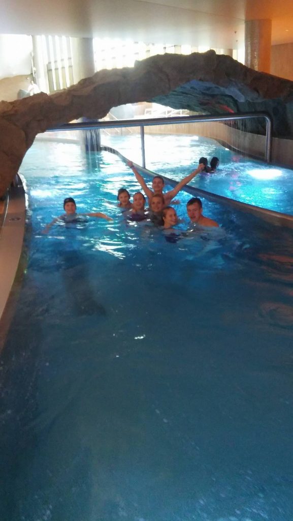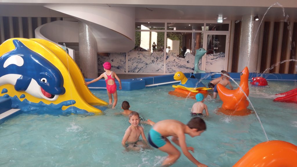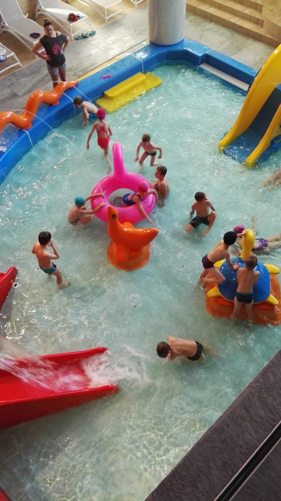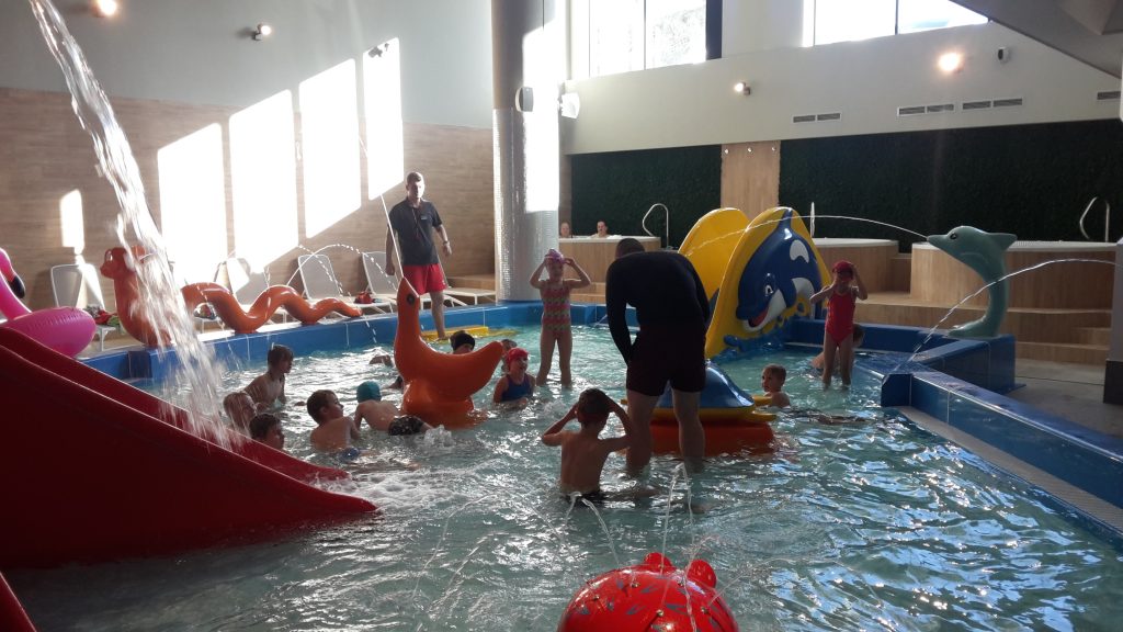 Uczniowie chętnie korzystali z atrakcji znajdujących się na terenie obiektu, między innymi z 25-metrowego basenu pływackiego, rwącej rzeki, Surf Wave – pierwszej w Polsce sztucznej fali do surfingu, czterech zewnętrznych zjeżdżalni, jacuzzi, wyspy piratów i brodziku dla dzieci z mini zjeżdżalniami i armatkami wodnymi. Wszyscy byli zachwyceni i świetnie się bawili, co widać na załączonych zdjęciach.