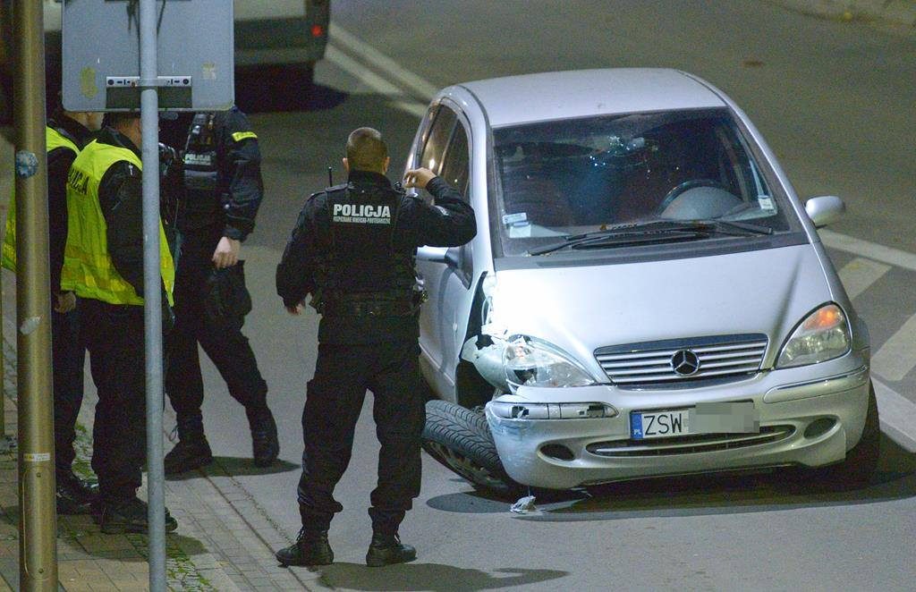 Kierowca mercedesa uderzył w zaparkowany samochód. Oba pojazdy mają uszkodzony przód. Dodatkowo granatowy volkswagen wjechał w znak informacyjny. Policjanci ustalają okoliczności zdarzenia. Więcej informacji podamy wkrótce.