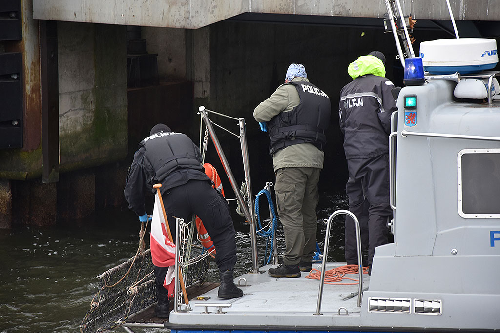 Ciało przetransportowano do przystani policji wodnej, tam zostało poddane wstępnym oględzinom.