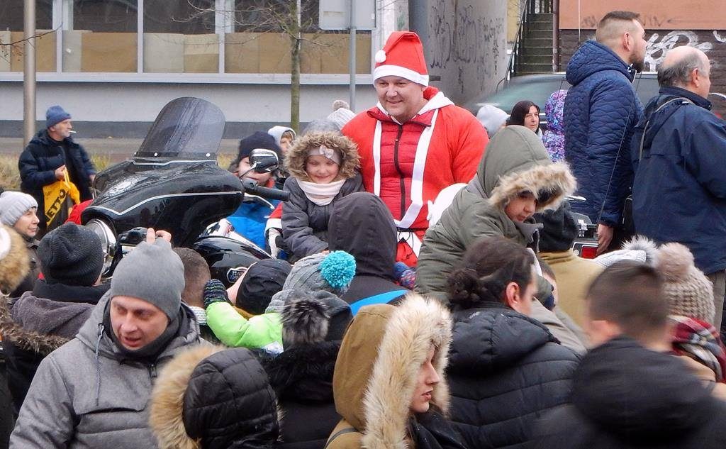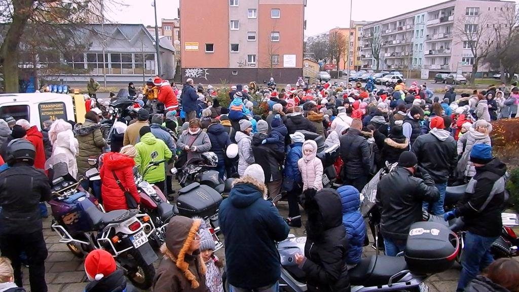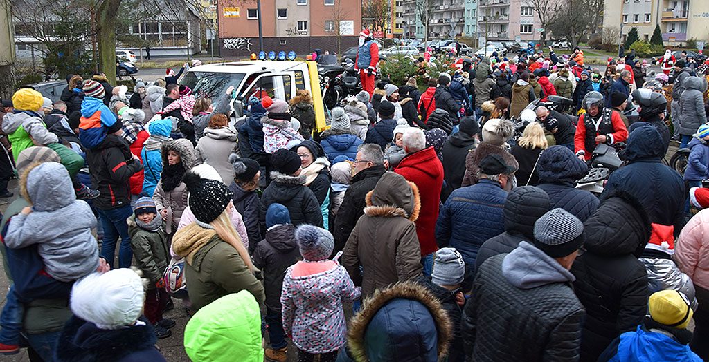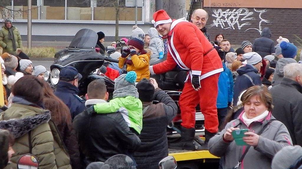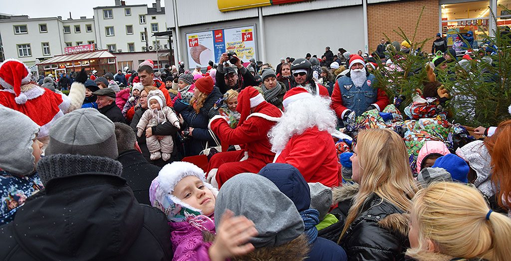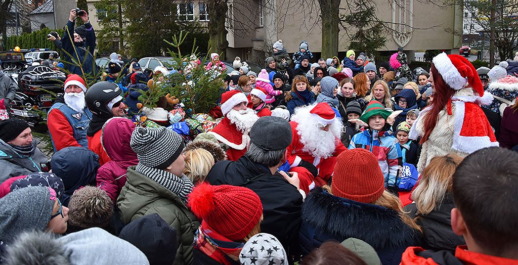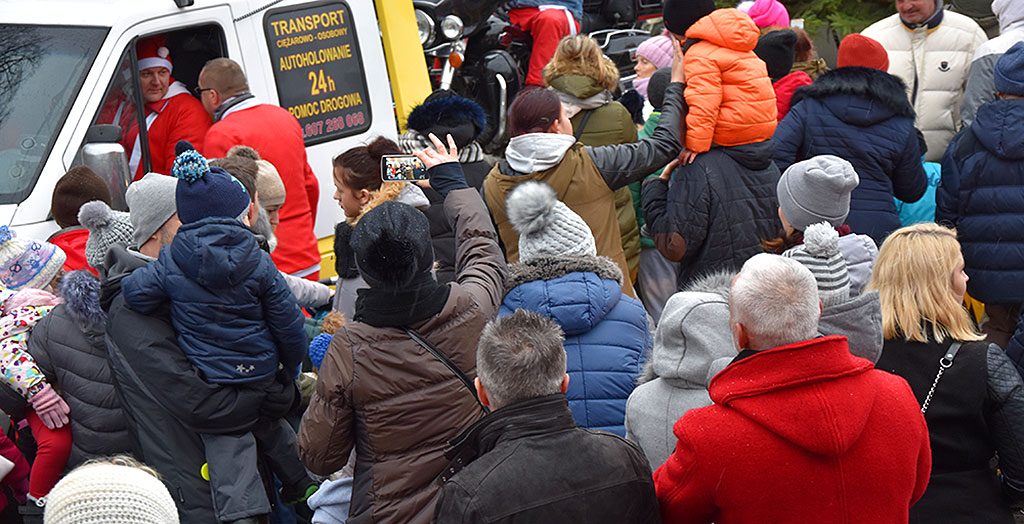Na motocyklu przyjechał także Mikołaj, oczywiście z workiem pełnym prezentów. Dzieci z rodzicami było tak wiele, a ścisk tak wielki, że przez chwilę było nawet niebezpiecznie. Organizatorzy jednak zapanowali nad tłumem oczekujących.