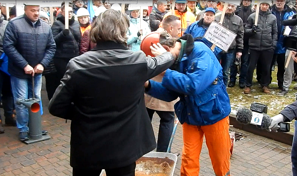 [FILM] Lider Nowoczesnej Piotr Misiło uderzył stoczniowca w kask, czy chciał go tylko poprawić?