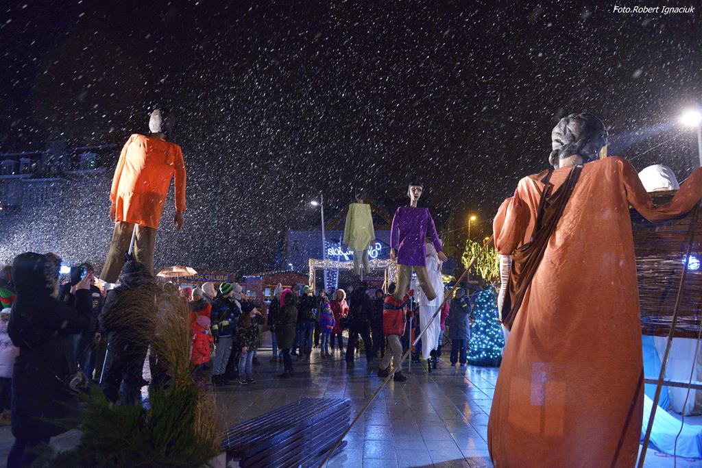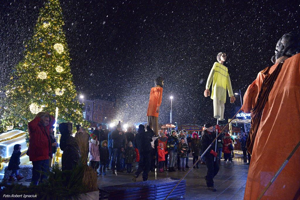 [ZDJĘCIA I FILM] 5-metrowe lalki na pl. Wolności i wspólne śpiewanie kolęd