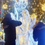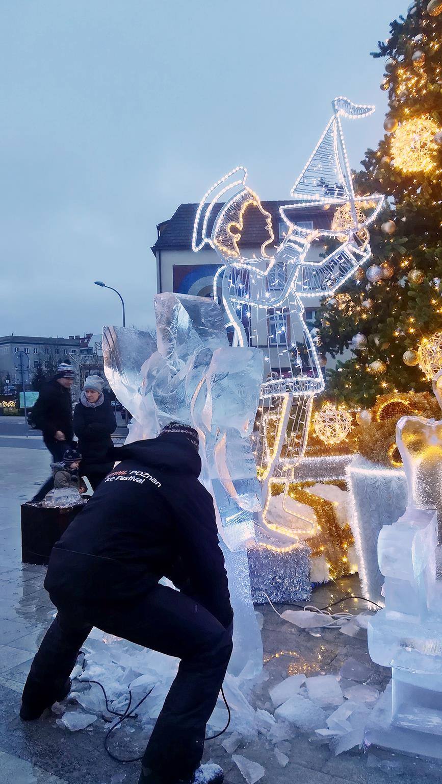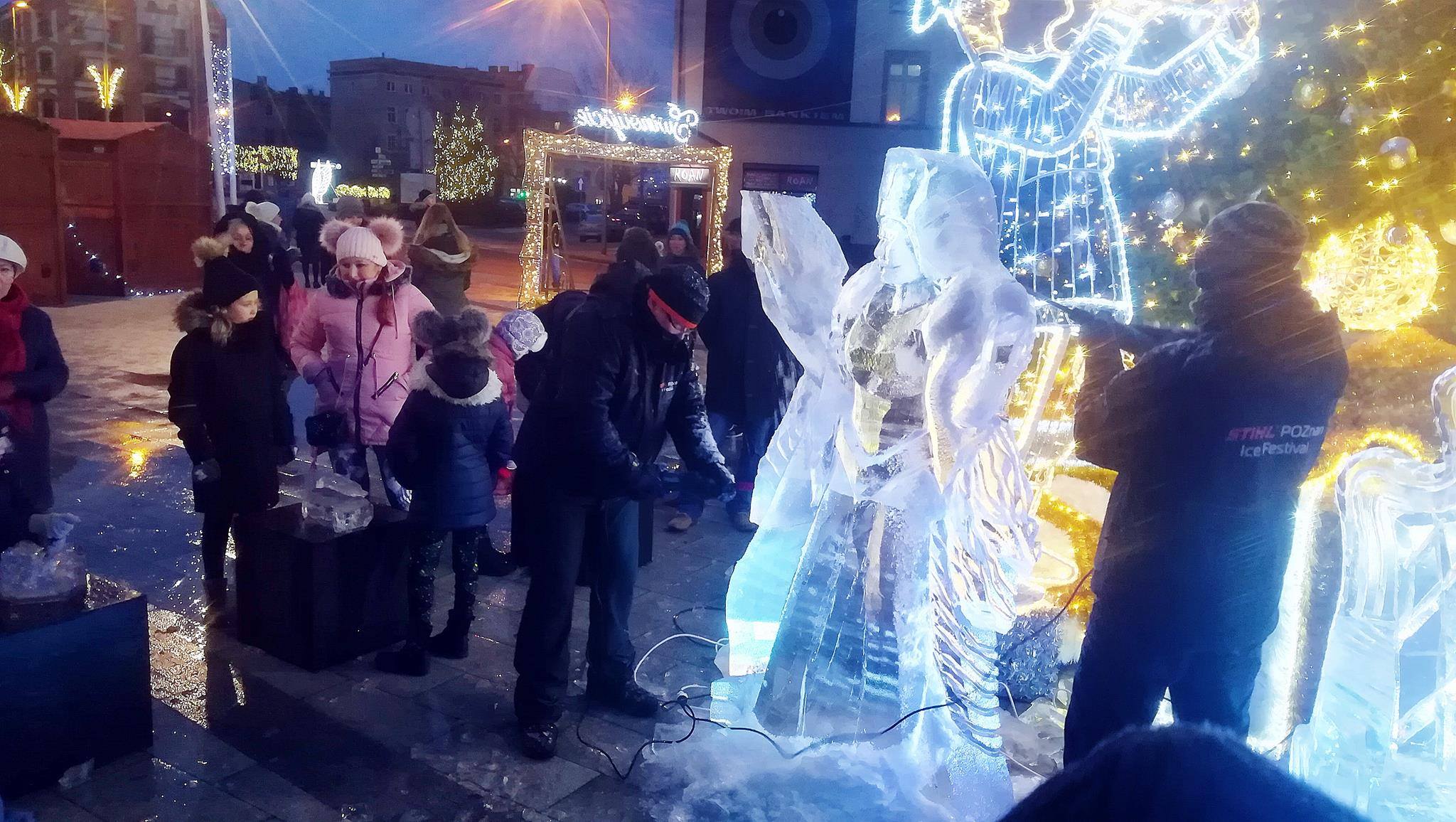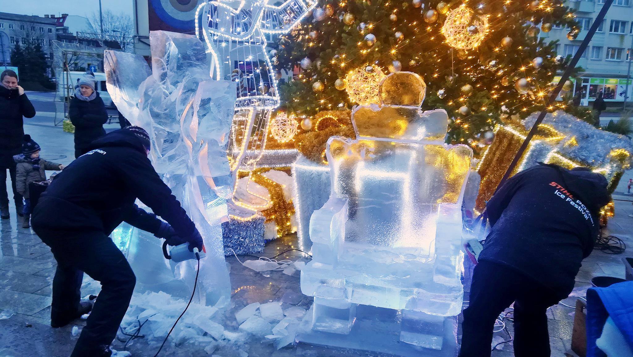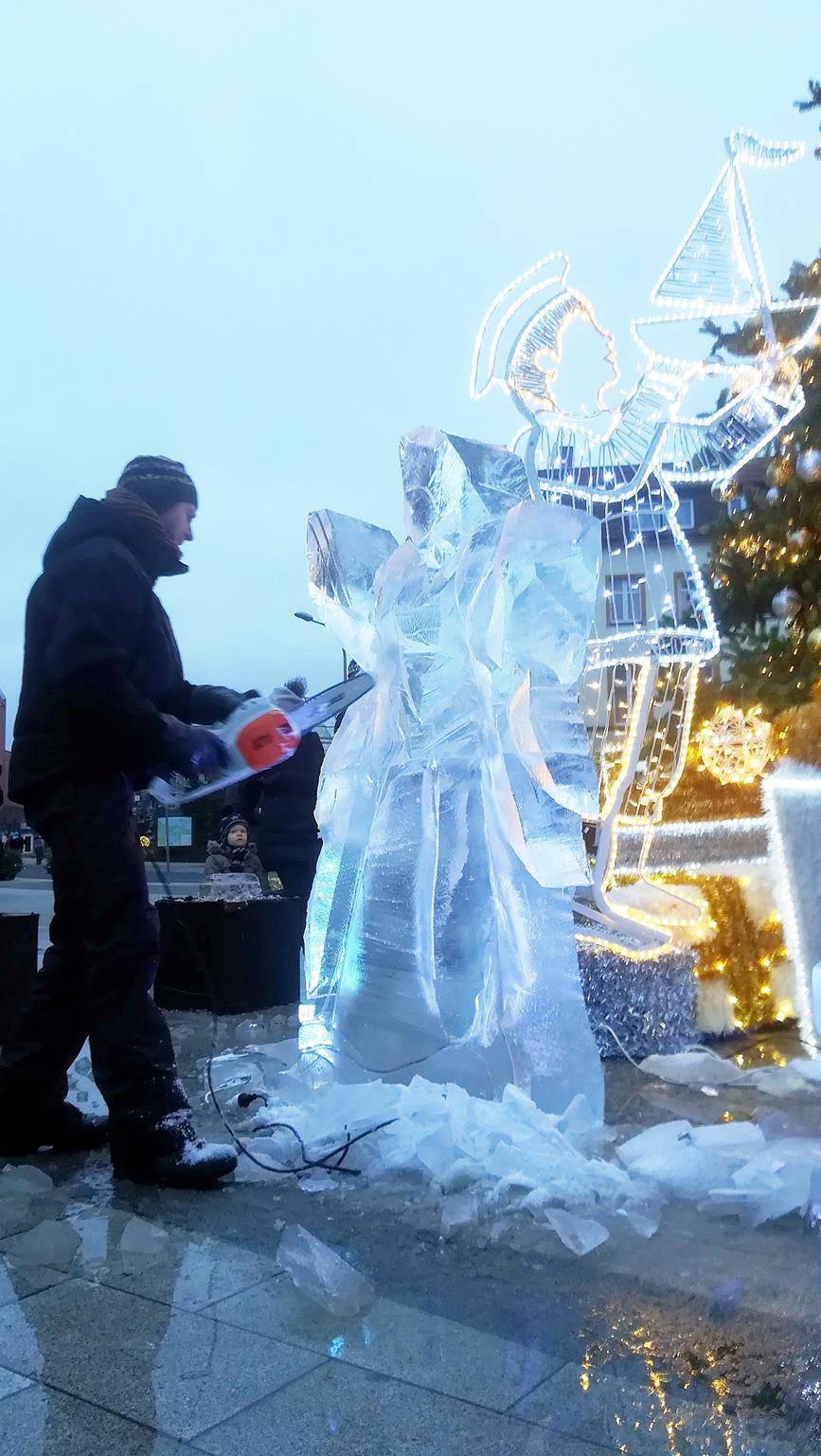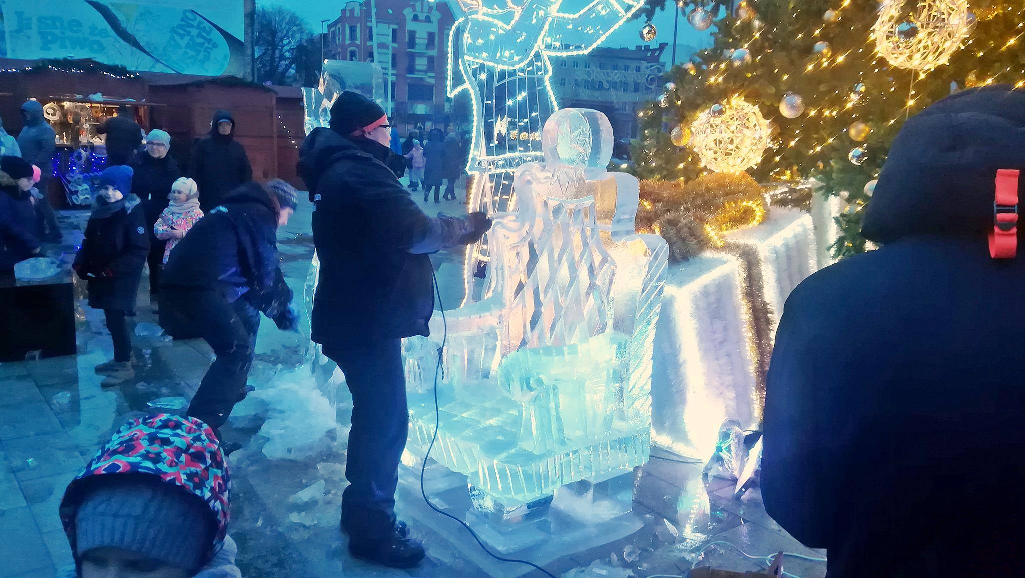 Oprócz straganów ze świątecznymi wiktuałami i ozdobami i mini wesołym miasteczkiem dla najmłodszych, w ten weekend na pl. Wolności zorganizowano  pokaz rzeźbienia w lodzie.