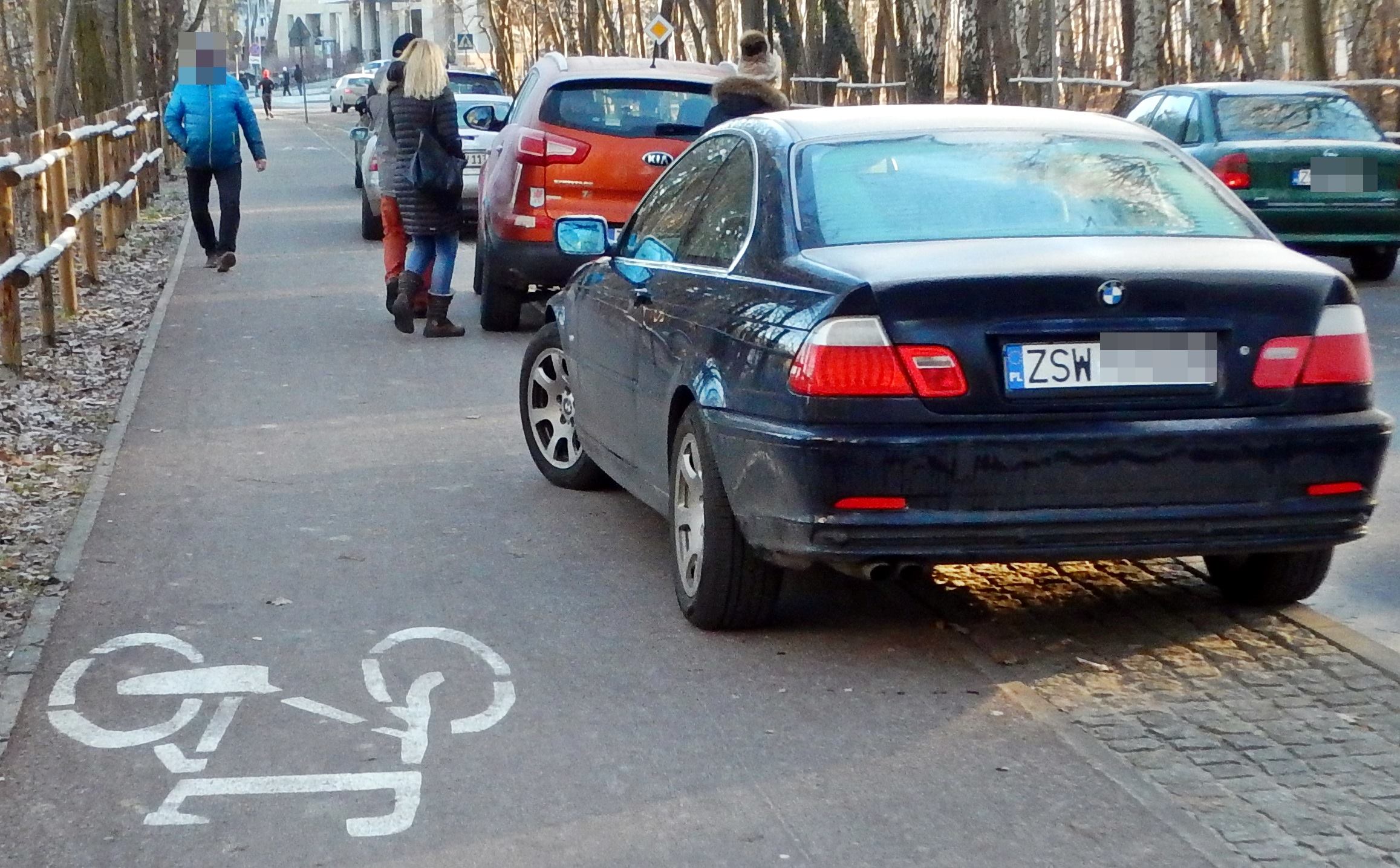 Zmotoryzowani mieszkańcy, którzy postanowili w poniedziałek odebrać karty zniżkowe do aquaparku, parkując samochody na ścieżce rowerowej, musieli liczyć się ze słonym mandatem.