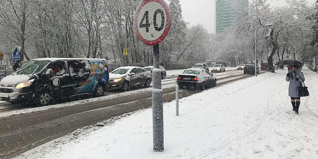 Opady śniegu, zalegające na drodze błoto pośniegowe, śliska nawierzchnia- to wszystko wymusza na kierującym zdjęcie nogi z pedału gazu. Pamiętajmy, że nawet jeżeli w terenie zabudowanym obowiązuje dopuszczalna prędkość do 50 km/h, to jest prędkość maksymalną z jaką możemy jechać. Warto jednak rozważyć czy jest ona adekwatna do warunków panujących na drodze.