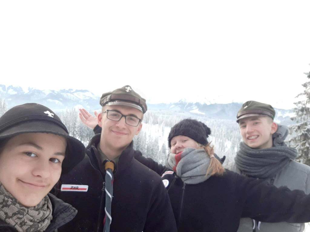„W dniach 12-20 stycznia udaliśmy się całym szczepem na zimowisko w Tatry przez Kraków i Zakopane do Bukowina Tatrzańskiej do schroniska „Głodówka”. Pogoda nam dopisywała, a nawet padał śnieg! Każda drużyna realizowała program w swoich podobozach, ale również mieliśmy kilka zajęć wspólnej integracji! Tematycznie związani byliśmy z obchodami 100 lecia odzyskania niepodległości oraz ogłoszeniem przez Senat RP rok 2018 rokiem  Harcerstwa. Było wiele gier terenowych, oraz zabaw! Mimo bardzo mroźnych nocy kilka osób złożyło przyrzeczenie harcerskie, a także zdobyło naramiennik wędrowniczy, stopnie i sprawności.