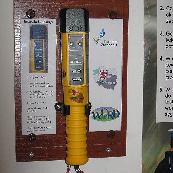 W poczekalni budynku Policji przy ulicy Krzywoustego 2a znajduje się urządzenie typu AlcoBlow. To szybki i prosty w obsłudze bezkontaktowym (pomiar bez ustnika) analizator na obecność lub nieobecność alkoholu w wydychanym powietrzu. Urządzenie umożliwia bezpłatne, anonimowe badanie trzeźwości.