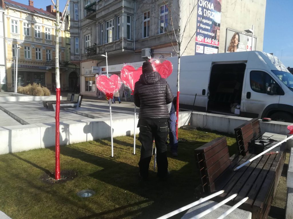 Mieszkańcy zdążyli się już przyzwyczaić, że ten centralny plac w naszym mieście, systematycznie zmienia swój wygląd, w zależności od pory roku i różnych świąt. Nie inaczej będzie w Walentynki. Aranżację placu stanowić będą różnego rodzaju ozdoby w kształcie serca: 15 sztuk lizaków o średnicach 60, 45 i 30 cm, 20 sztuk girland na latarnie uliczne, wianki wykonane z gałązek wikliny lub derenia do ozdobienia wież kwiatowych oraz wstążki i serca do ozdoby drzew rosnących na placu. Wykonawcą jest świnoujska firma Patgardens. Koszt to 10,5 tysiąca złotych netto. Cena obejmuje wykonanie, montaż, usuwanie aktów wandalizmu, uzupełnianie elementów dekoracji i ich rozbiórkę. Ozdoby zostaną zamontowane w dniu 13 lutego, a ich demontaż nastąpi 19 lutego 2018.