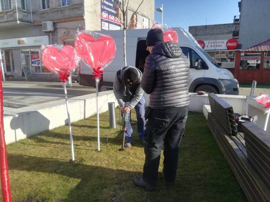 Trwa montaż walentynkowych dekoracji na Placu Wolności w Świnoujściu. W centralnym punkcie miasta zostaną zamontowane lizaki w kształcie serca, girlandy, wianki, a także blisko 1000 serc na piku. Walentynkową dekorację będzie można podziwiać do 19 lutego.