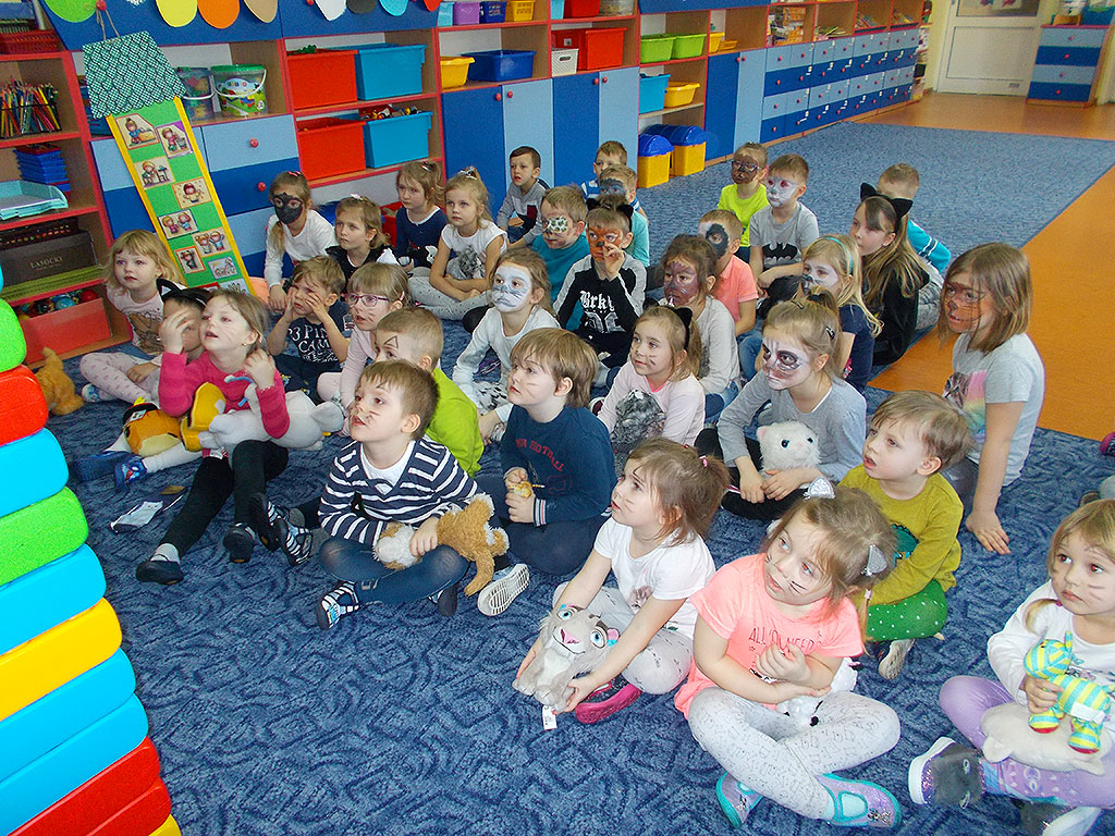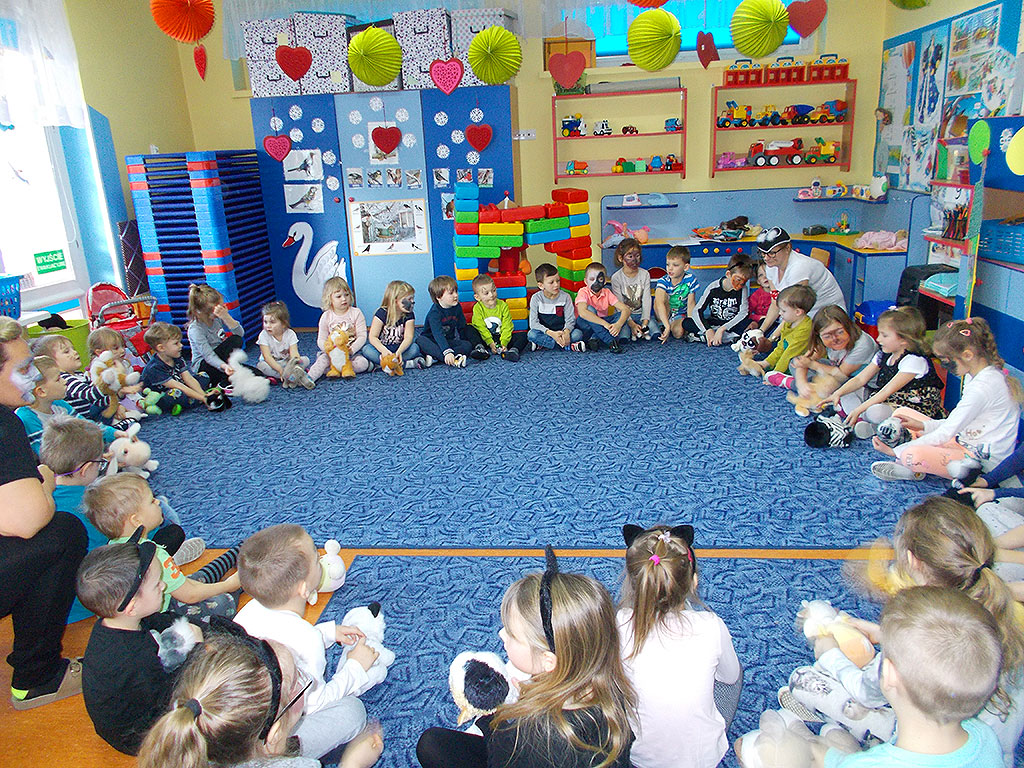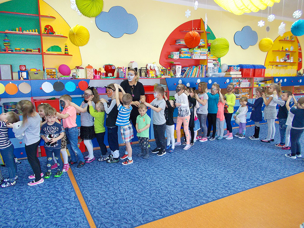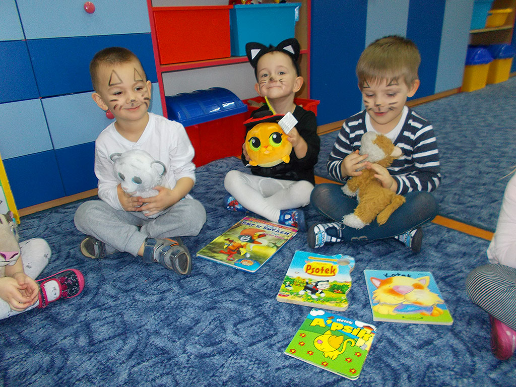 Tego dnia przedszkolaki upodobniły się do swoich czworonożnych przyjaciół a zajęcia i zabawy zdominowała kocia tematyka.  Były wesołe, „miauczące” kocie piosenki, zabawy naśladowcze w formie opowieści ruchowej. Przedszkolaki zgromadziły wiele książek o kotkach, nie tylko domowych, ale i  drapieżnych, zapoznały się z kocimi obyczajami, poznały też wiele ciekawostek z  „kociego” życia np.:, „Po, co kotu wąsy?”.