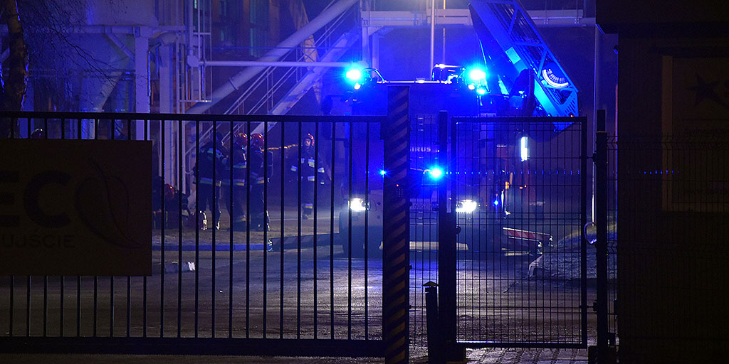 Nocne ćwiczenia strażaków na terenie ciepłowni