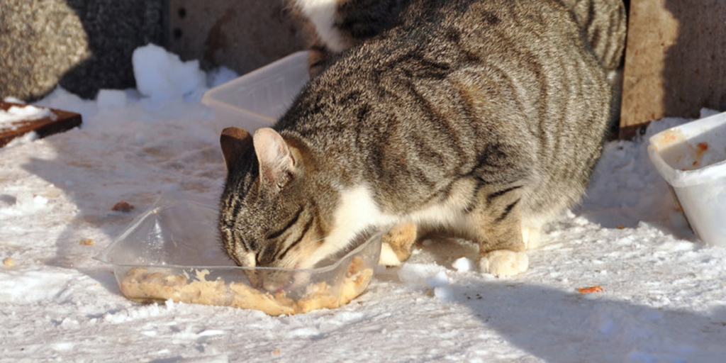 W okresie zimy pamiętaj o dokarmianiu wolno żyjących kotów.