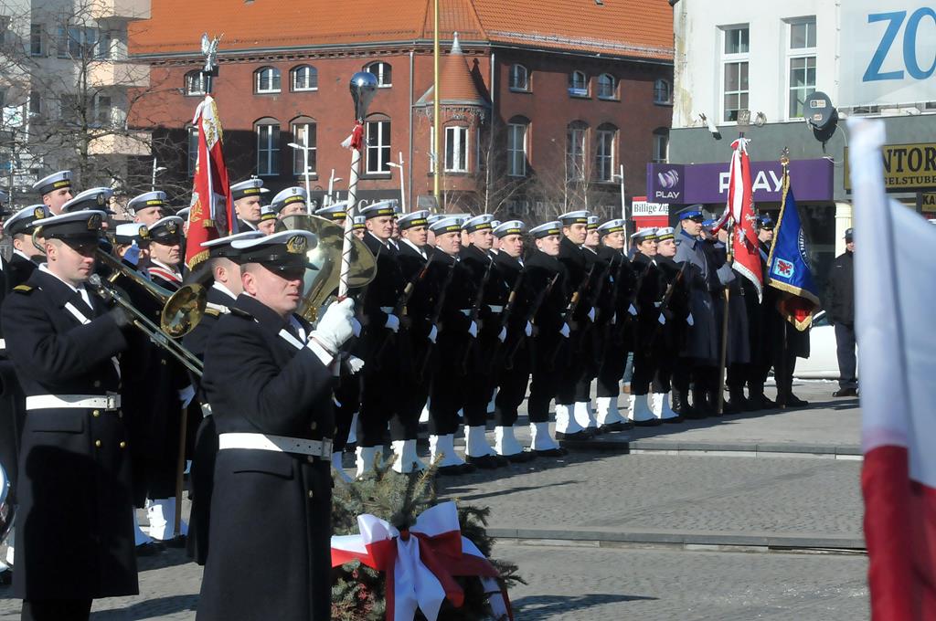Świnoujskie uroczystości związane z pamięcią o „Żołnierzach Wyklętych” odbyły się na Placu Słowiańskim, przed pomnikiem „Bohaterom Walki o Niepodległość Rzeczpospolitej”. Poza przedstawicielami magistratu, uczestniczyli w nich przedstawiciele dowództwa oraz jednostek 8.FOW, kompania honorowa, poczet flagowy, sztandar świnoujskiej Komendy Portu Wojennego oraz Orkiestra Wojskowa. W trakcie uroczystości odczytano „Apel Pamięci”, a ks. kapelan kmdr por. Adam BAZYLEWICZ wraz z zebranymi odmówił modlitwę w intencji poległych żołnierzy. Delegacja 8. Flotylli Obrony Wybrzeża, na czele z zastępcą dowódcy komandorem Zygmuntem BIAŁOGŁOWSKIM złożyła pod pomnikiem wieniec pamiątkowy. Uroczystość zakończyło odegranie Pieśni Reprezentacyjnej Wojska Polskiego. Na Placu Wolności zaprezentowano również wystawę okolicznościową pt. „Namioty Wyklętych”.