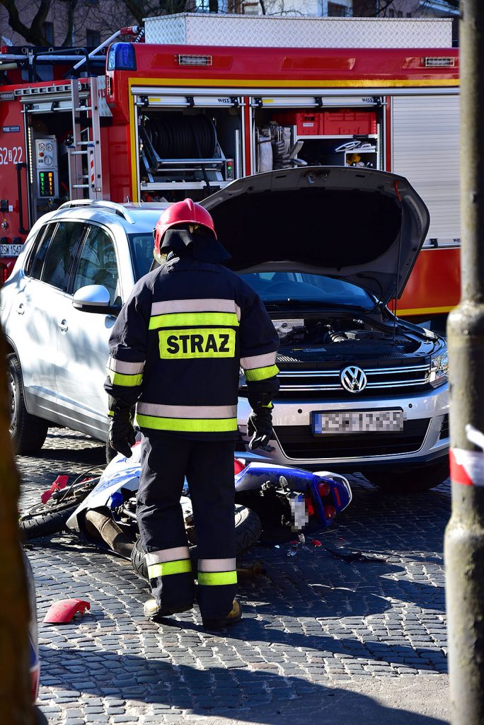 Kierujący volkswagenem zderzył się kierującym motocyklistą. Do zdarzenia drogowego doszło w poniedziałek około godz. 14.45 na skrzyżowaniu ulic Wojska Polskiego i Puławskiego. Na miejsce skierowano straż pożarną, policję oraz pogotowie ratunkowe. Motocyklistę zabrano do szpitala. Policjanci ustalają okoliczności zderzenia.