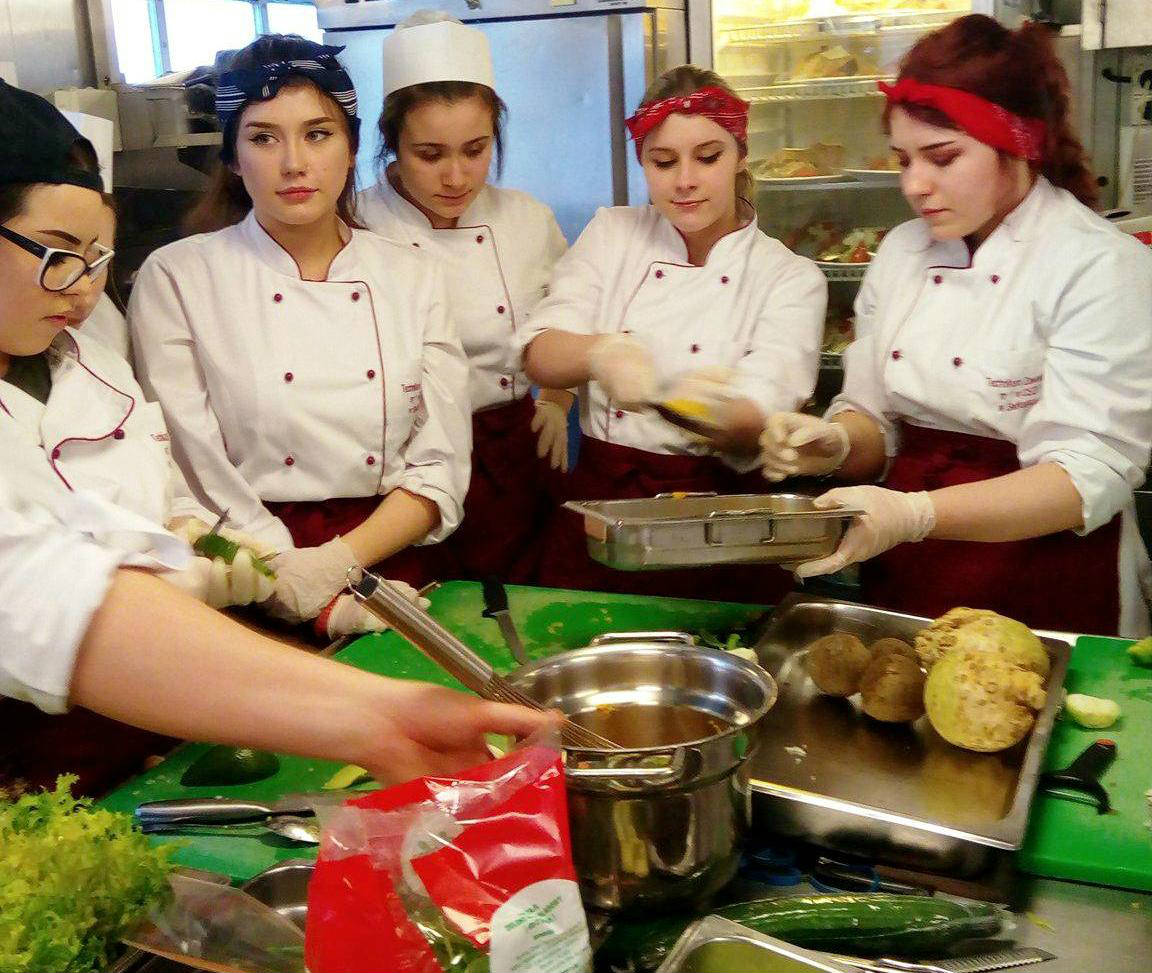Z kolei kilka dni wcześniej grupa dziewcząt z klasy I Technikum Żywienia i Usług Gastronomicznych uczestniczyła w warsztatach szkoleniowych na promie Polonia w Unity Line. W pierwszej części szkolenia dziewczęta zgłębiły wiedzę na temat owoców krajowych i tropikalnych, zapoznały się ze sposobami ich przechowywania i magazynowania, poznały specyfikę obróbki wstępnej oraz sposób przygotowywania ich do produkcji. Następnie pod okiem szefa kuchni sporządziły desery z owoców smażonych oraz przygotowały dwie sałatki tropikalne. W drugiej części szkolenia zapoznały się z różnymi warzywami oraz sposobami ich przetwarzania, zaś punktem kulminacyjnym było sporządzenie frytek z batatów oraz guacamole.