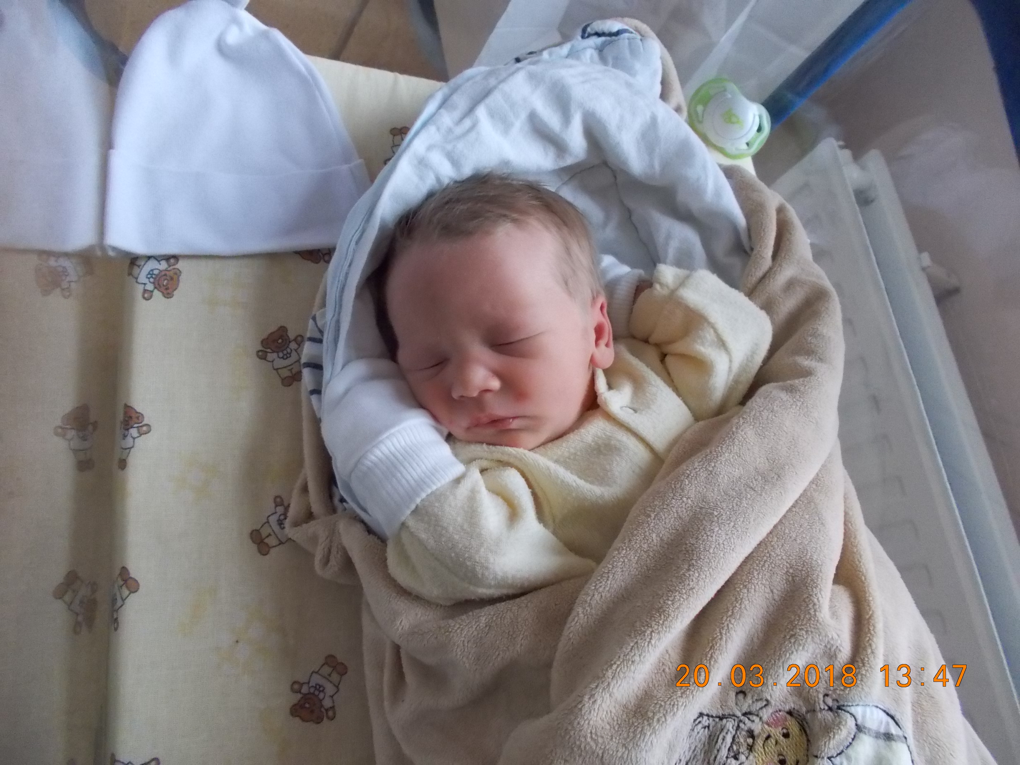 Ur. 19.03.2018 o godz. 21:47. Waga/długość: 2800/49 cm. Imiona rodziców: Agnieszka i Krzysztof