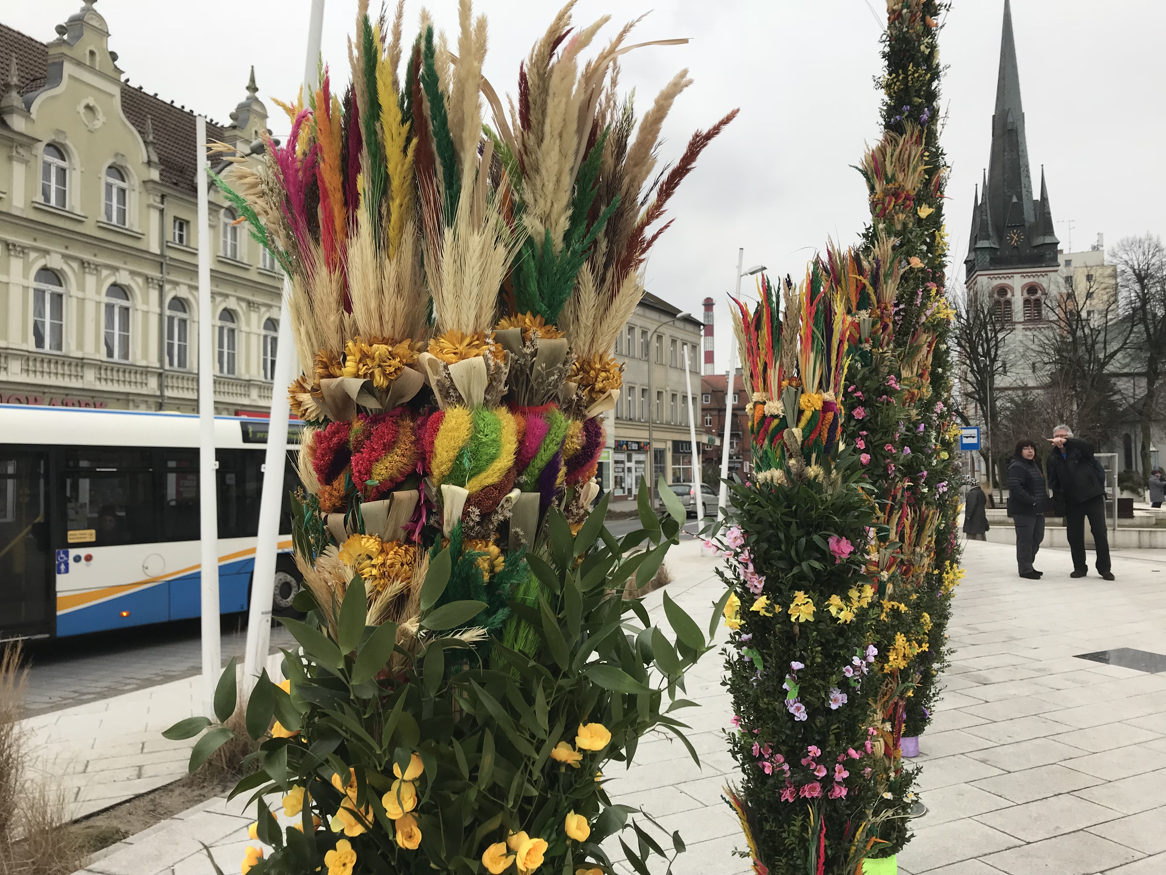 10 wielkanocnych palm stanęło dziś rano na placu Wolności. Najwyższa ma 5,5 metra wysokości. To pierwsze ze świątecznych ozdób, które pojawiły się na placu. Kolejne będą montowane już po niedzieli.