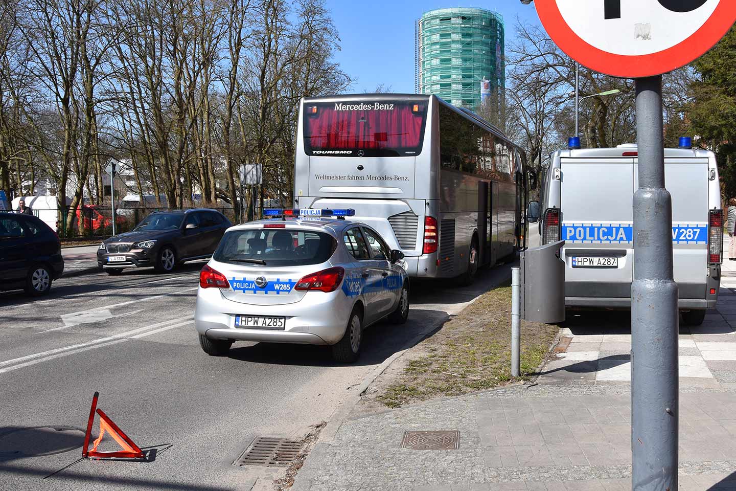 Autokar zablokował skrzyżowanie ulic Wojska Polskiego i Matejki. Kierowcy jadący od strony centrum miasta, mieli problem przez zawalidrogę, który całkowicie zablokował jeden z pasów ruchu. Aby pomóc kierowcom, policjanci kierowali ruchem.