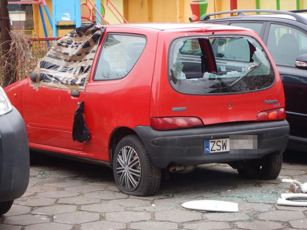 To auto stało od dłuższego czasu zaparkowane przy wieżowcu przy ul. Matejki 12. Najpierw przebito opony, później wybito boczną szybę. Właściciel zakleił ją folią, chcąc uchronić auto przed kolejnymi zniszczeniami.