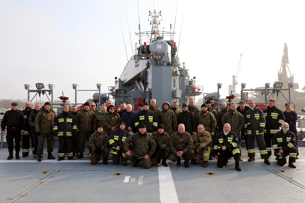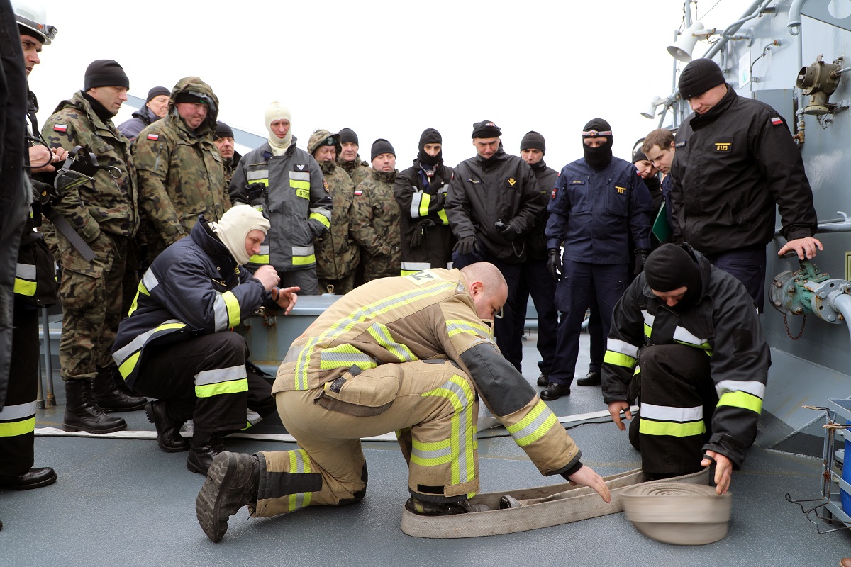 W ramach odprawy zorganizowano zajęcia praktyczne gaszenia pożarów wewnętrznych oraz pokaz obrony przeciwawaryjnej i gaszenia pożarów na pokładzie ORP „Kontradmirał X. Czernicki” podczas jednodniowego wyjścia na morze. Na okręcie marynarze zapoznali strażaków z budową okrętu, zaprezentowano wszystkie stosowane urządzenia przeciwpożarowe oraz techniczne środki walki z pożarem podczas obrony własnej, strażacy natomiast podzielili się z załogą okrętu swoimi doświadczeniami.