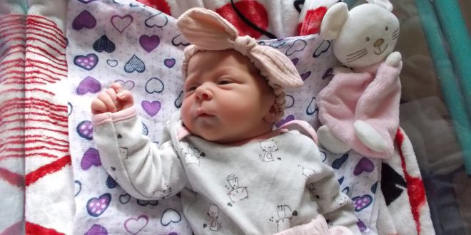 Ur. 12.04.2018 o godz. 17:10. Waga/długość: 3370/53 cm. Imiona rodziców: Justyna i Jarosław.