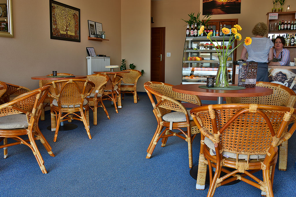 W kawiarni liczącej około 50 m kw. pomieści się około 20 osób. Przytulności miejscu dodają wygodne ratanowe krzesła i kanapy.