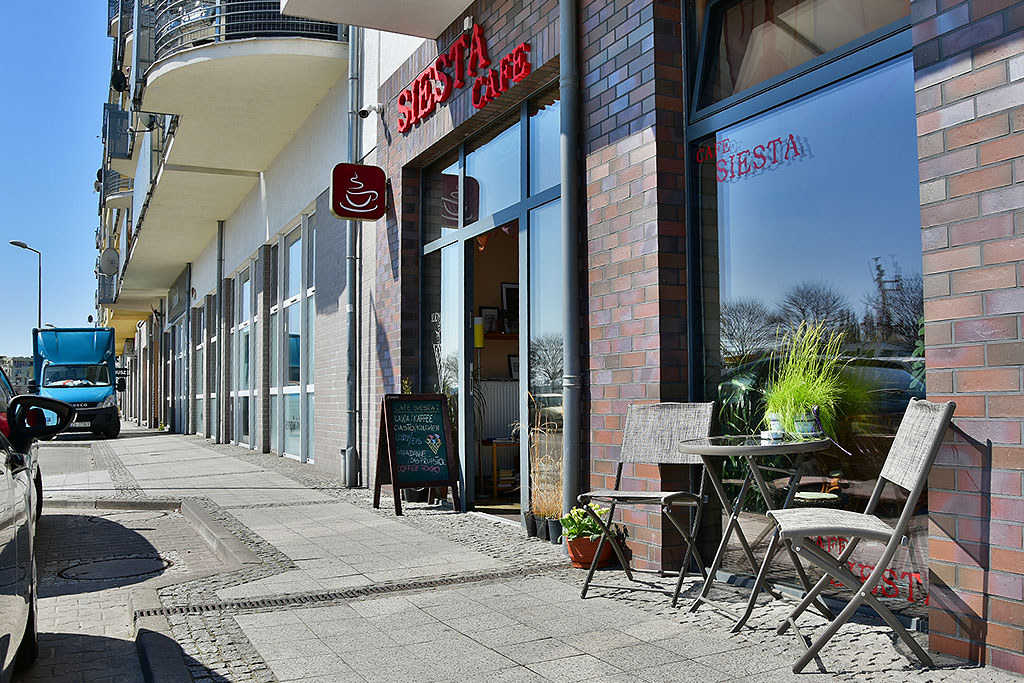 Siesta Cafe  przy Wybrzeżu Władysława IV to jedna z najmłodszych kawiarni w Świnoujściu. Przez kilka ostatnich lat to miejsce stało niezagospodarowane. Właściciele terenu wybudowali w tym miejscu budynek wpisujący się w otoczenie. Parter zajmują dwa lokale usługowe: optyk i kawiarnia.