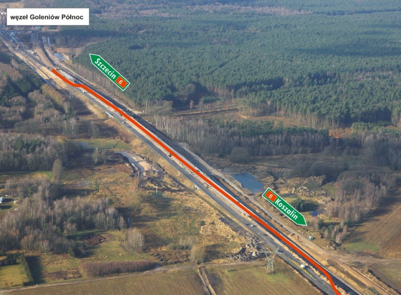 Od piątku kierowcy jadą nową jezdnią S6 na północnej obwodnicy Goleniowa na odcinku około 1,2 km. Tym samym nie będzie już ruchu wahadłowego, który obowiązywał na starej (południowej) jezdni w rejonie wiaduktu nad linią kolejową. Ruch pojazdów będzie się odbywał nową (północną) jezdnią w obu kierunkach. Likwidacja tego utrudnienia z pewnością poprawi płynność ruchu na tym fragmencie DK6. Aby poprawić płynność ruchu podczas weekendu majowego również na węźle Szczecin Kijewo łączącym autostradę A6 z DK10 zostały zlikwidowane zamknięcia pasów ruchu. Dodatkowo do rozpoczęcia powrotów z weekendu majowego powinien zostać uruchomiony przejazd byłą ulicą Goleniowską, który będzie stanowił alternatywę dla pojazdów osobowych jadących od Świnoujścia pozwalając ominąć przebudowywany odcinek autostrady A6 Szczecin Dąbie-Rzęśnica.