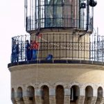 Dwie największe flagi. Jedna na latarni morskiej, druga w górskim forcie