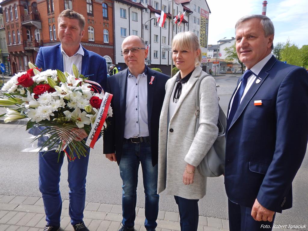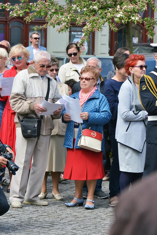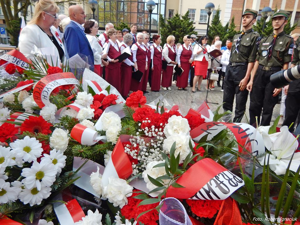 Wcześniej władze samorządowe i mieszkańcy miasta uczestniczyli we mszy św. odprawionej w intencji Ojczyzny. O godz. 11 uroczystości przeniosły się na pl. Słowiański pod Pomnik Bohaterom Walk o Niepodległość Rzeczypospolitej. Delegacje władz samorządowych, służb mundurowych, instytucji, szkół, organizacji, związków, stowarzyszeń oraz mieszkańców i gości, złożyły kwiaty pod pomnikiem.