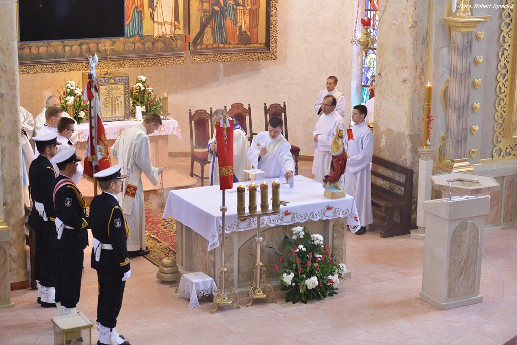 Uroczystość przekazania obowiązków rozpoczęła się od parady burtowej. Oficerowie zdający i obejmujący obowiązki, w towarzystwie zaproszonych gości, przyjęli z pokładu motorówki hydrograficznej MH-1 paradę burtową okrętów stacjonujących w Porcie Wojennym Świnoujście. Złożono również wiązankę kwiatów pod pomnikiem „Tym, którzy przywrócili Pomorze macierzy”. Na uroczystej zbiórce pododdziałów flotylli, meldunek o zdaniu i przyjęciu obowiązków przyjął Inspektor Marynarki Wojennej wiceadmirał Jarosław Ziemiański.