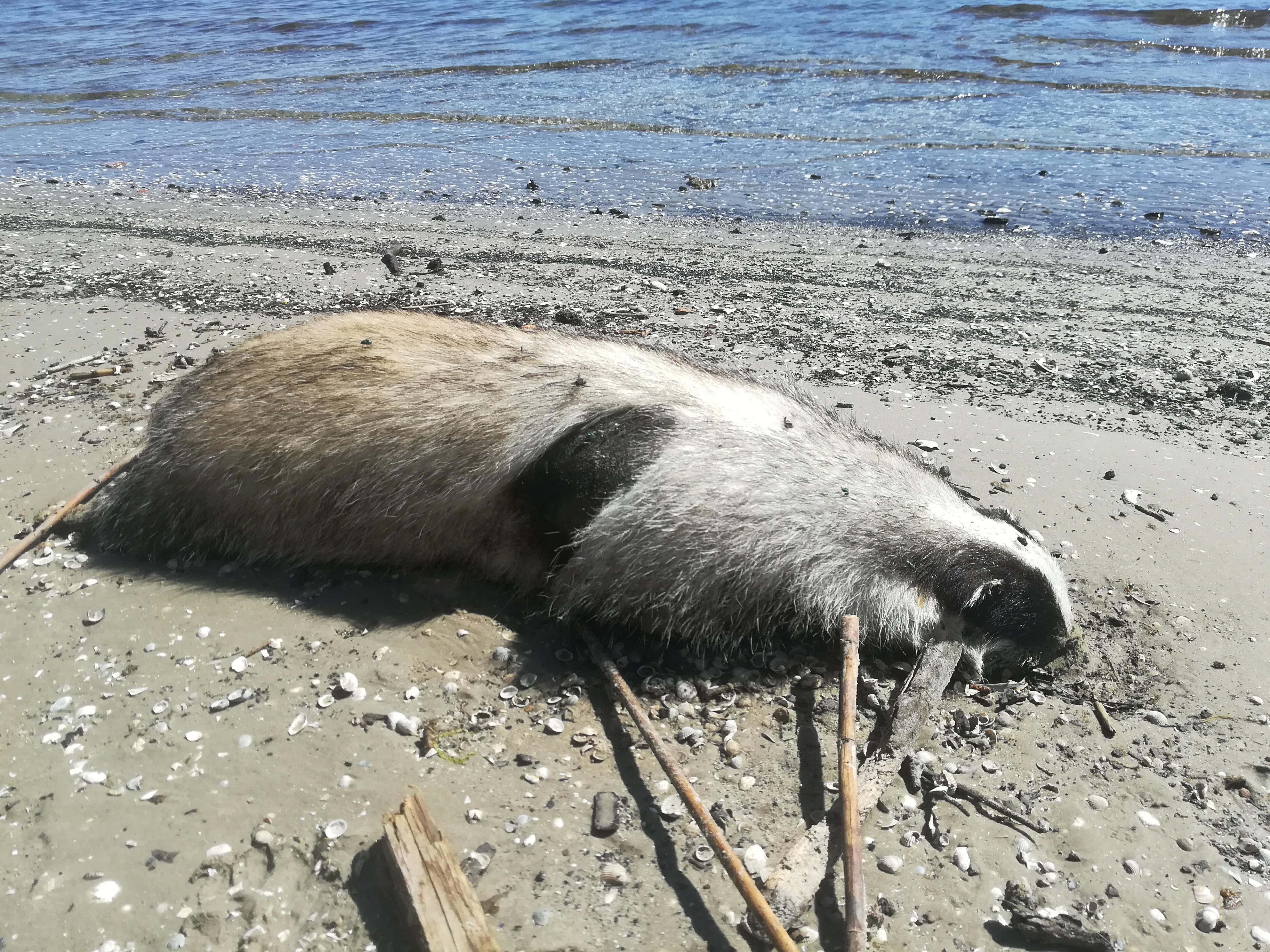 Martwy borsuk rozkłada się na „dzikiej plaży”